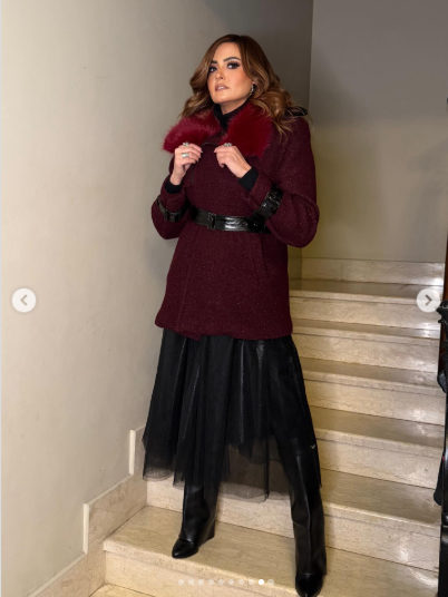 تألقت بشرى في الصور بإطلالة محتشمة، حيث ارتدت جيبة باللون الأسود ونسقت معها جاكت طويل باللون النبيتي، مما كشف عن ذوقها الأنيق في أختيار الأزياء.