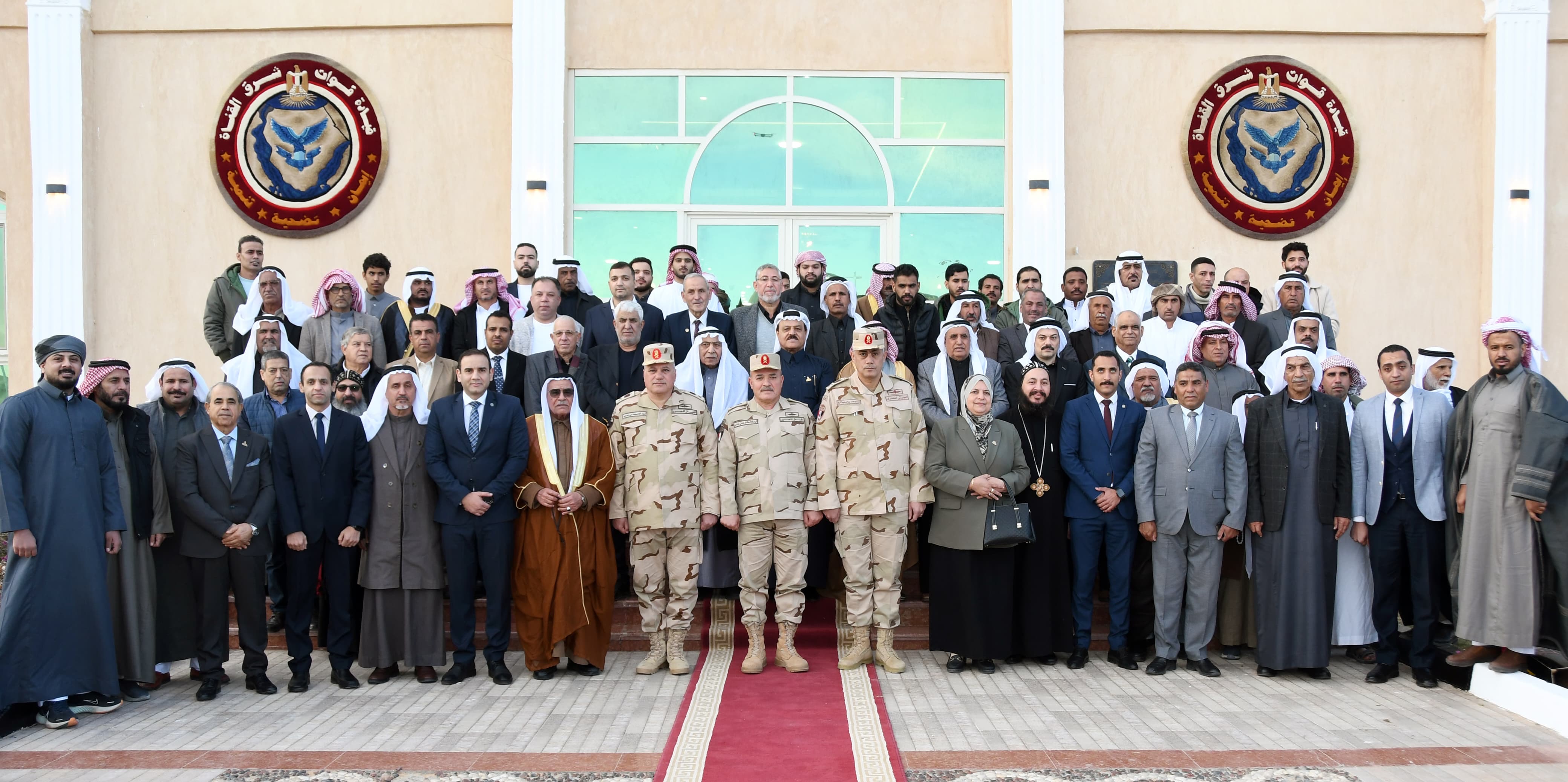 ونقل اللواء أح هشام فتحى شندى قائد قوات شرق القناة لمكافحة الإرهاب تحيات وتقدير الفريق أشرف سالم زاهر القائد العام للقوات المسلحة وزير الدفاع والإنتاج الحربى والفريق أحمد خليفة رئيس أركان حرب القوات المسلحة لشيوخ وعواقل سيناء.