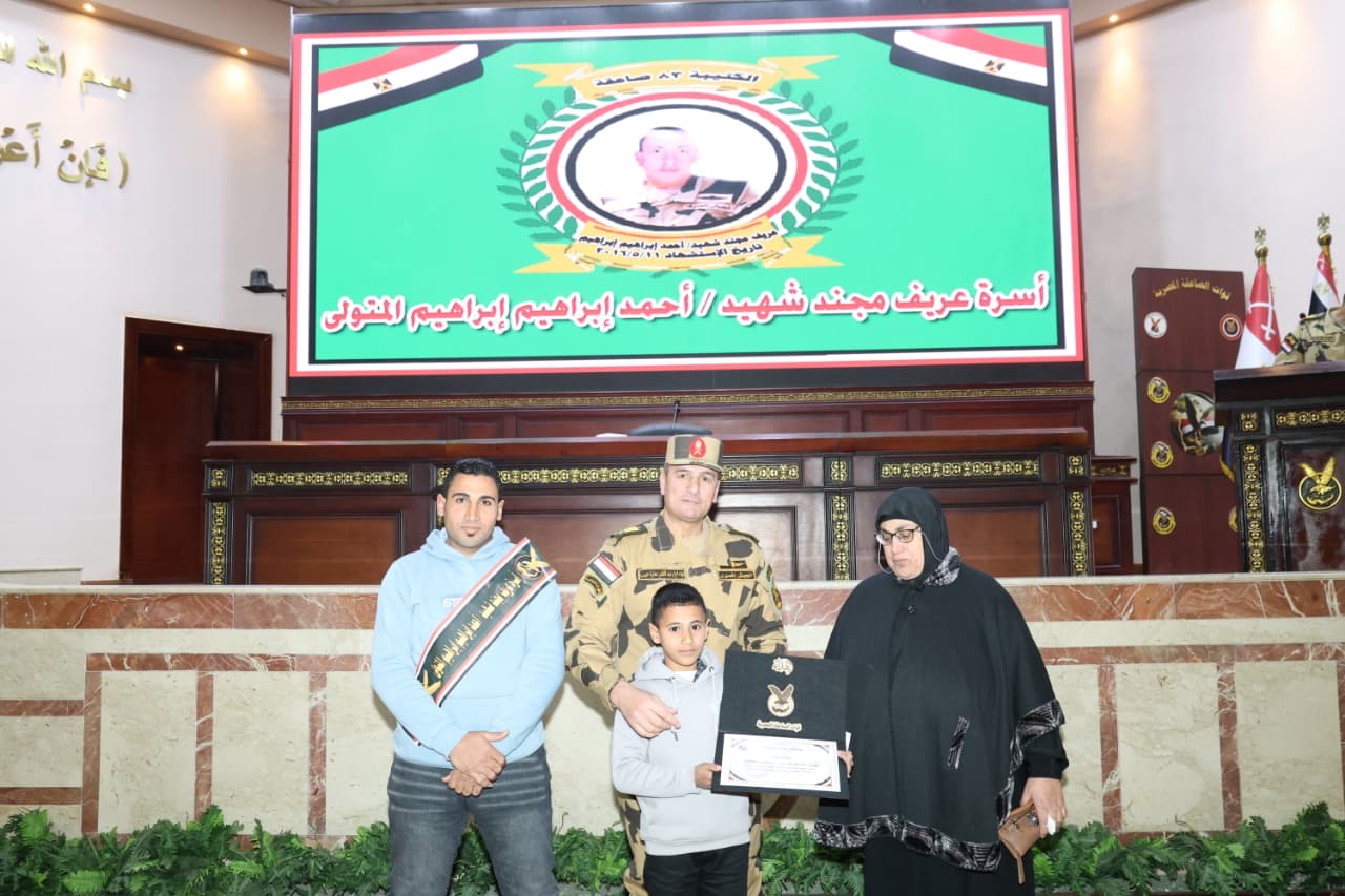 وفى ختام الاحتفالية تم تكريم عددا من أسر الشهداء تقديرا لتضحيات أبنائهم الأبطال الذين ضربوا أروع الأمثلة فى الشجاعة والفداء.