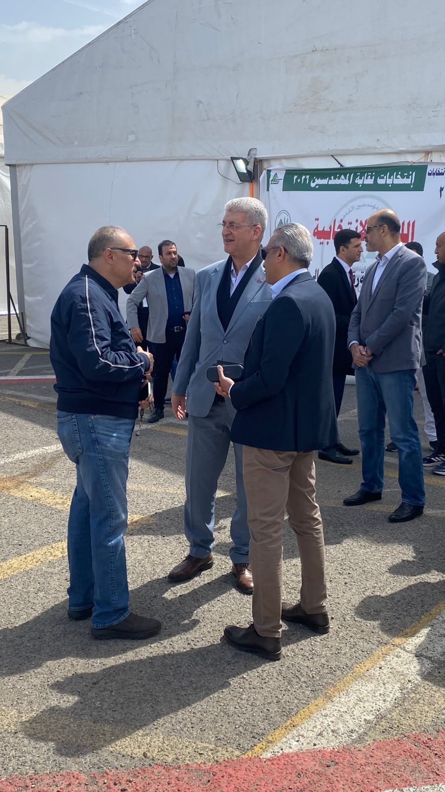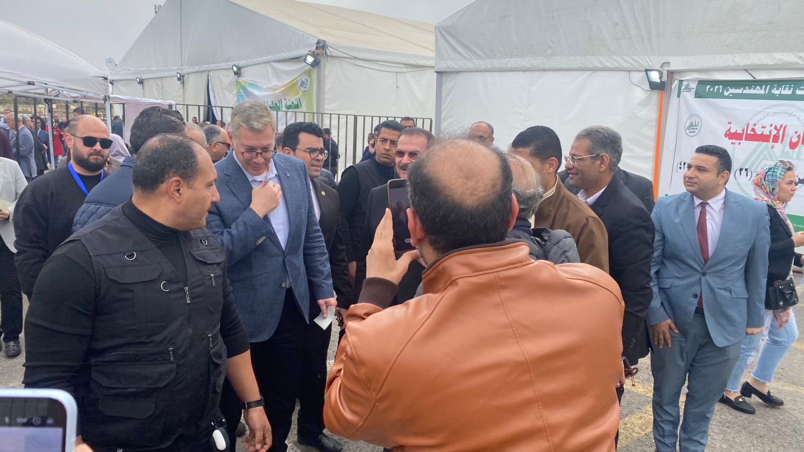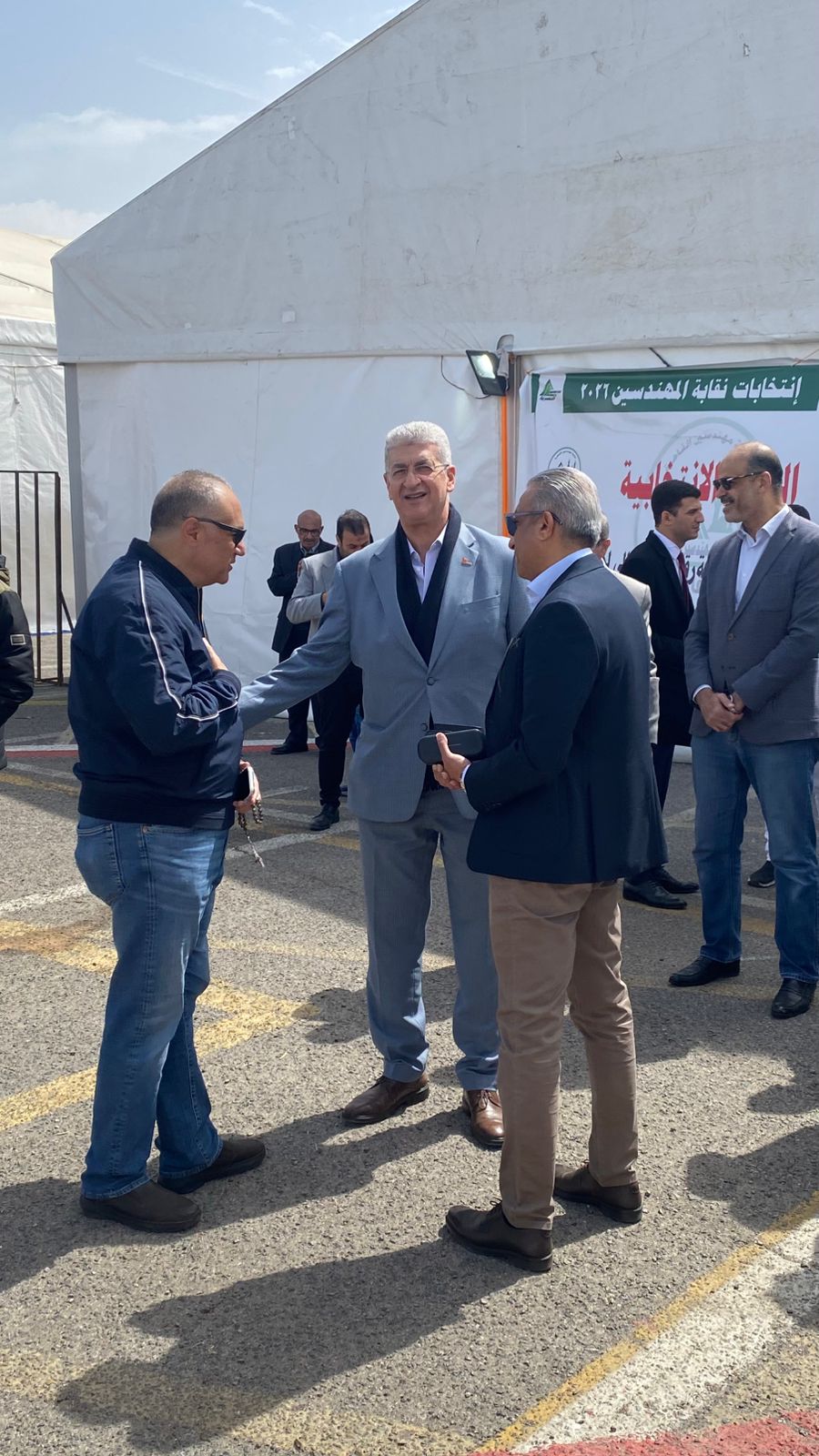 وكان من بين هؤلاء: المهندس طارق النبراوي نقيب عام المهندسين، الذي حرص على التقاط الصور مع أنصاره ومؤيديه، والمهندس هاني ضاحي النقيب السابق والمرشح الحالي، والمهندس وليد لطفي رئيس شركة بتروجيت، وسبقهم المهندس كريم بدوي وزير البترول والثروة المعدنية، الذي استقبله أعضاء الجمعية العمومية بحفاوة بالغة والتقطوا معه الصور.