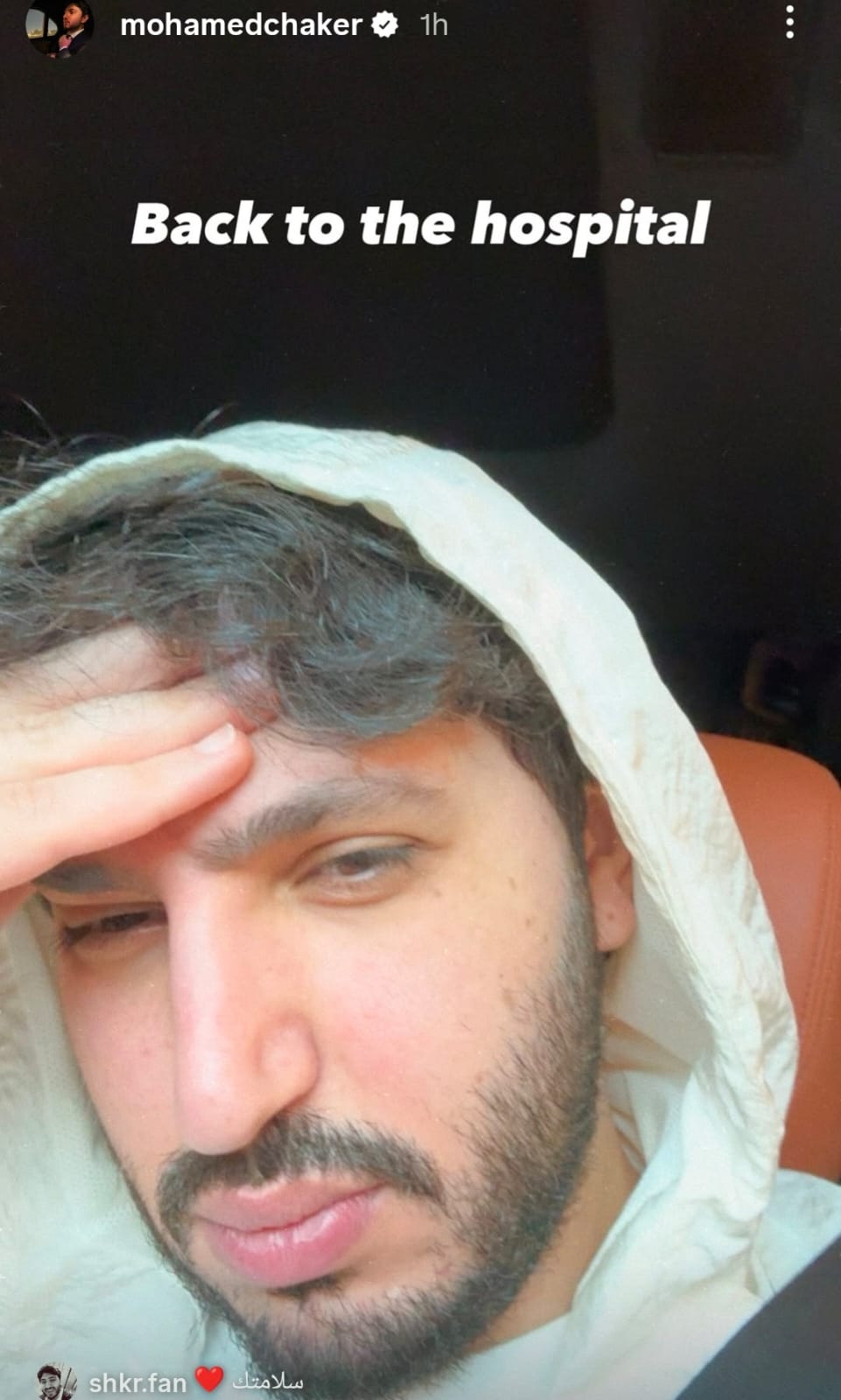 وشارك محمد فضل شاكر، صورة له عبر حسابه على إنستجرام، أوضح خلالها أنه سيعود للمستشفى من جديد بعد تعرضه لوعكة صحية، حيث كتب: العودة للمستشفى.