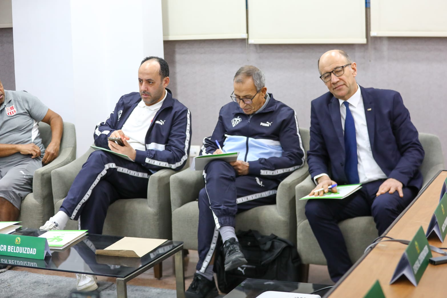 ومثل المصري في الاجتماع اللواء إيهاب الساعي المدير التنفيذي للنادي واللواء حمدي عثمان مدير أمن النادي والكابتن محمود جابر، المدير الإداري للفريق والدكتور عزيز شمام ، طبيب الفريق والكابتن إبراهيم غانم، مسئول المهمات.