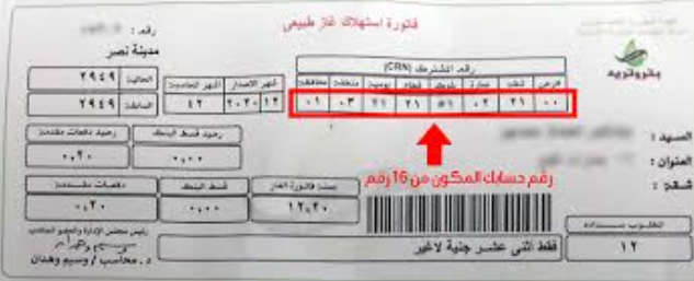 ـ إدخال رقم المشترك المكوّن من 16 رقمًا الموجود على فاتورة سابقة.