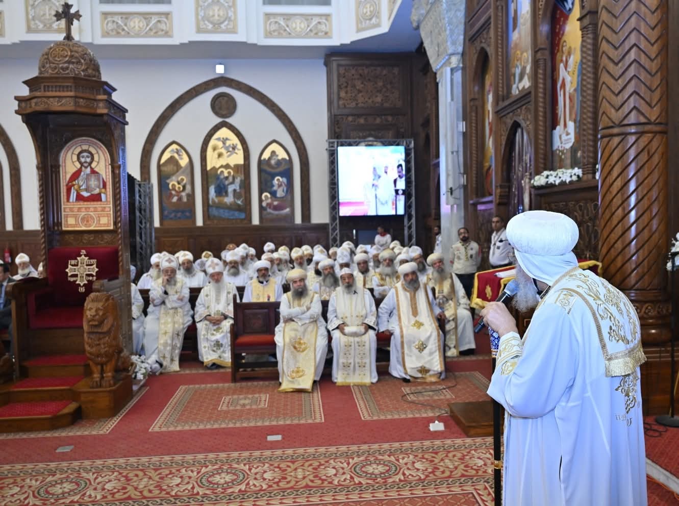 وقال قداسته موجهًا حديثه إلى الآباء المتقدمين لنوال "القمصية": "الكنيسة في هذا الصباح وفي حضور الآباء الأحبار الأجلاء والآباء الكهنة والشمامسة وكل الشعب تقدم لك رتبة القمصية في مشوار حياتك وهو نوع من التقدير والكرامة لخدمتك وعملك وتعبك. وبحسب إنجيل هذا اليوم الذي يتكلم عن الثمر سيكون السؤال الذي يقدمه لك المسيح في هذه المناسبة: أين هي ثمارك؟!"
