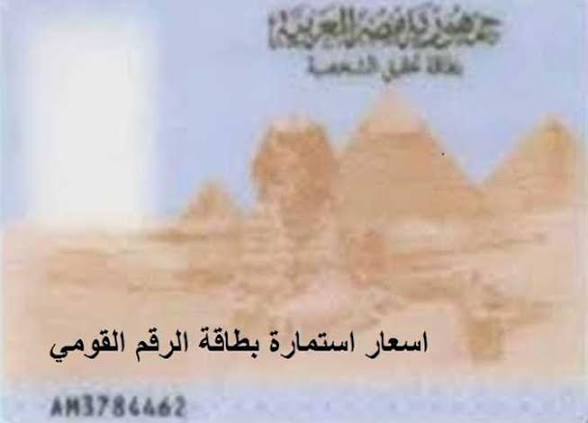 أسعار استمارة بطاقة الرقم القومي