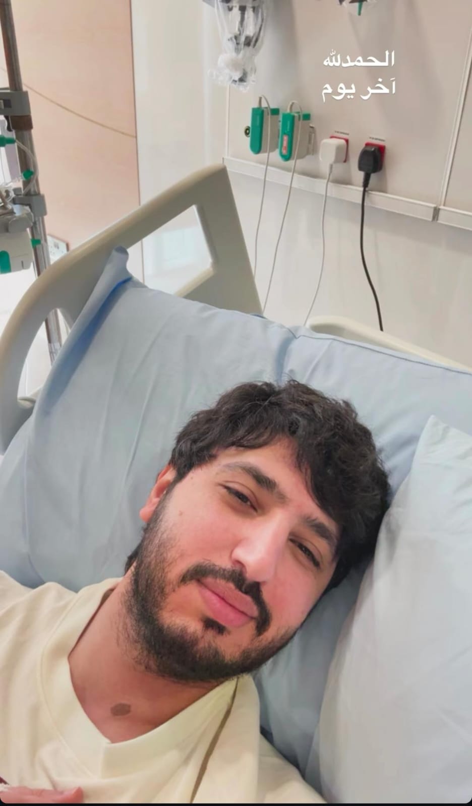 ونشر محمد فضل شاكر صورة له من المستشفي، معلقاً:"الحمد لله ، أخر يوم".