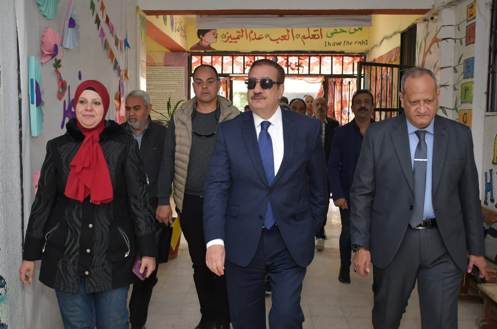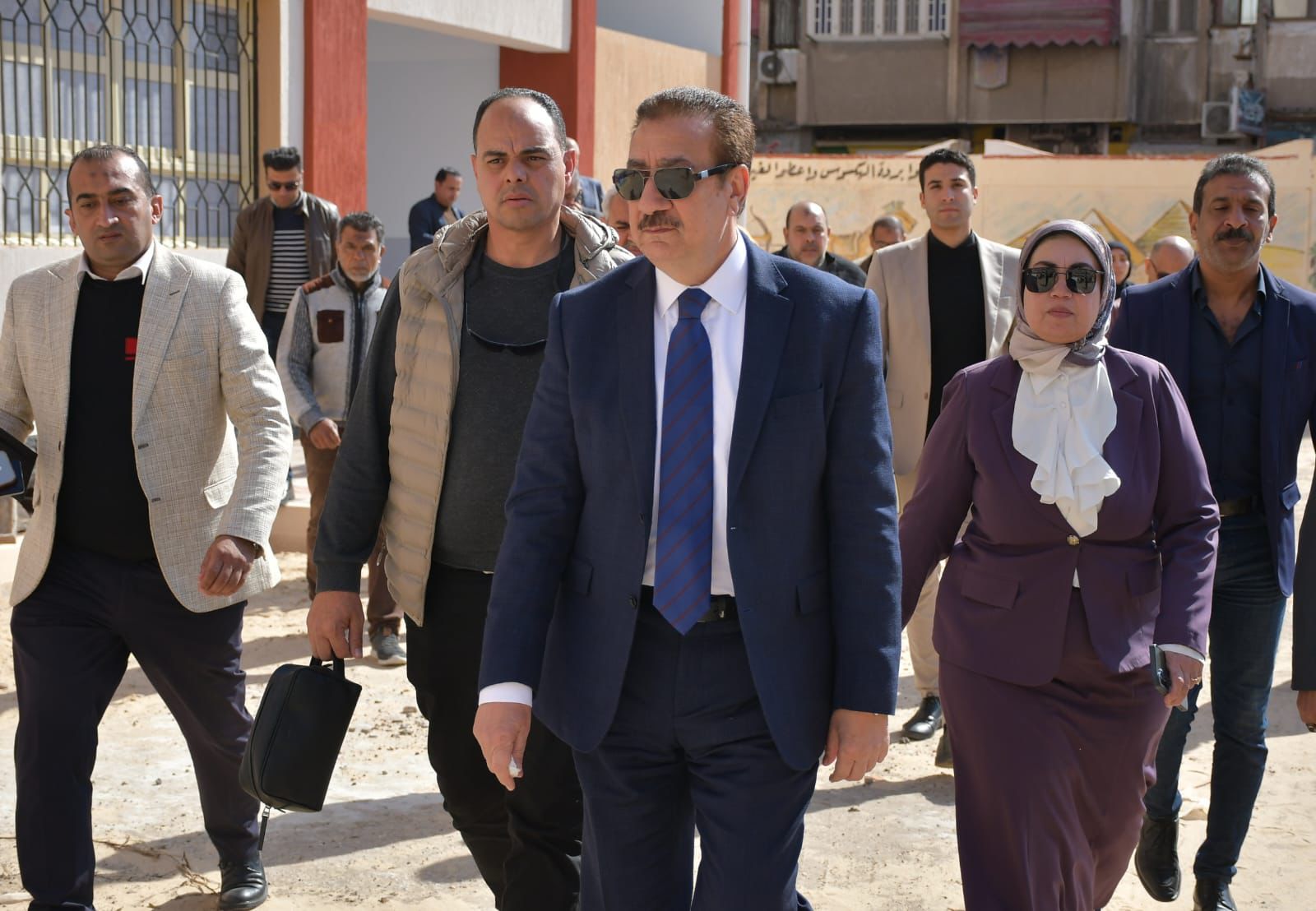 رافق محافظ بورسعيد سمر الموافي رئيس مدينة بورفؤاد،والمهندس يسري قطايا مدير الابنية التعليمية، والاستاذ محمود بدوي