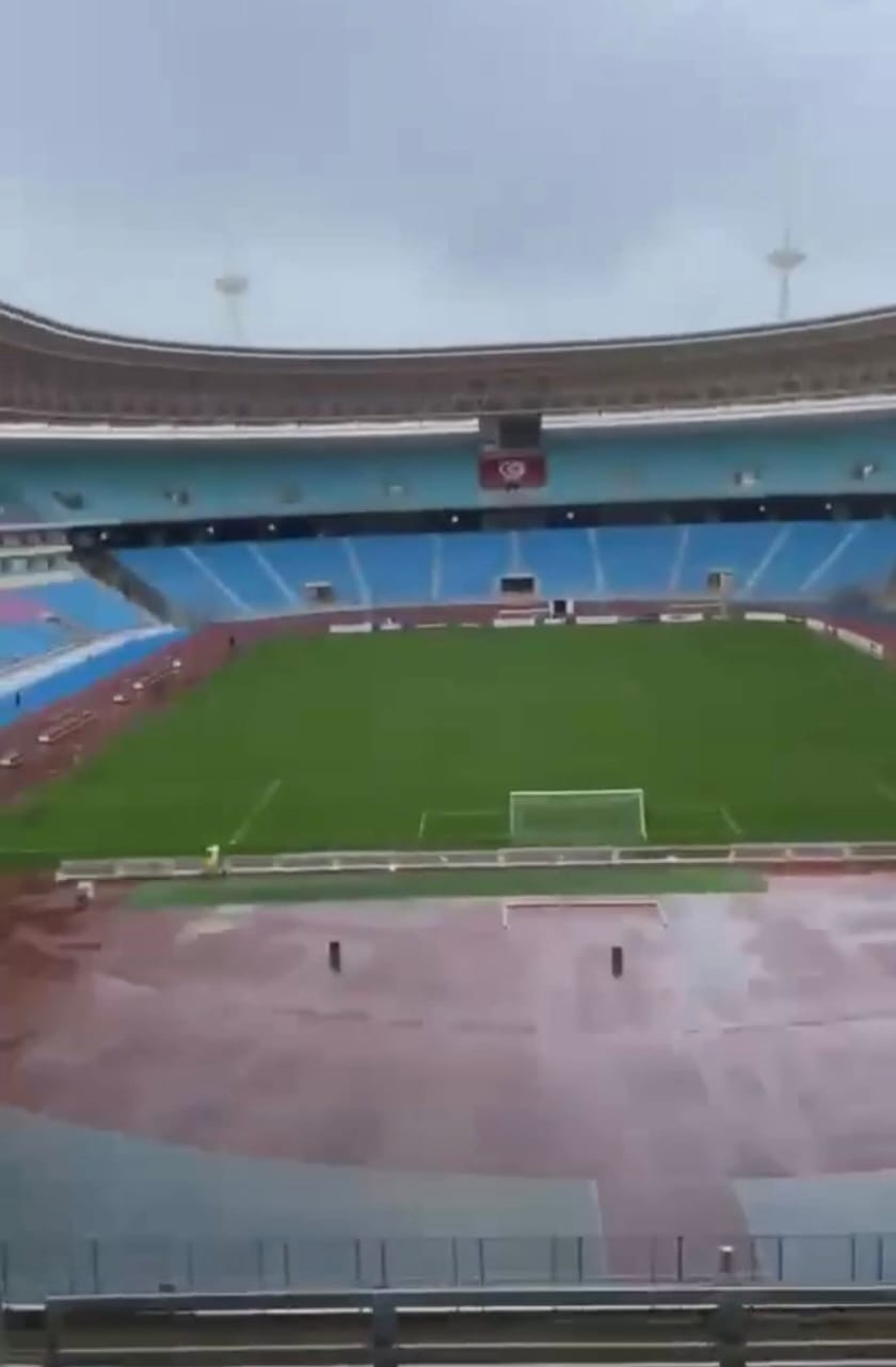 وتساقطت الأمطار بكثافة على أرضية الملعب في الساعات التي سبقت صافرة البداية، بينما واصل مسئولو الملعب وأطقم الصيانة متابعة حالة أرضية الميدان للتأكد من جاهزيتها لاستضافة المباراة دون تأثير كبير على سير اللقاء.