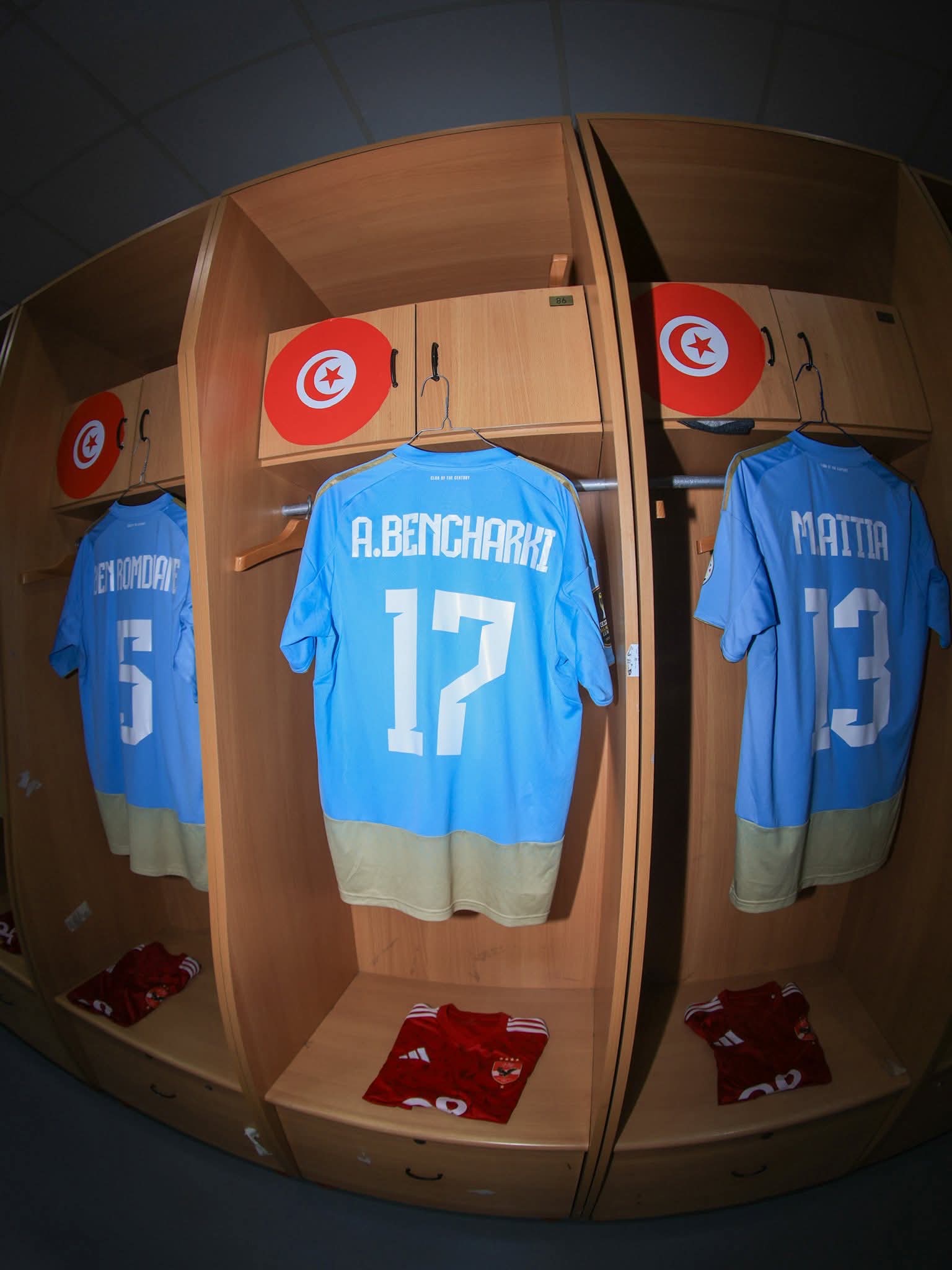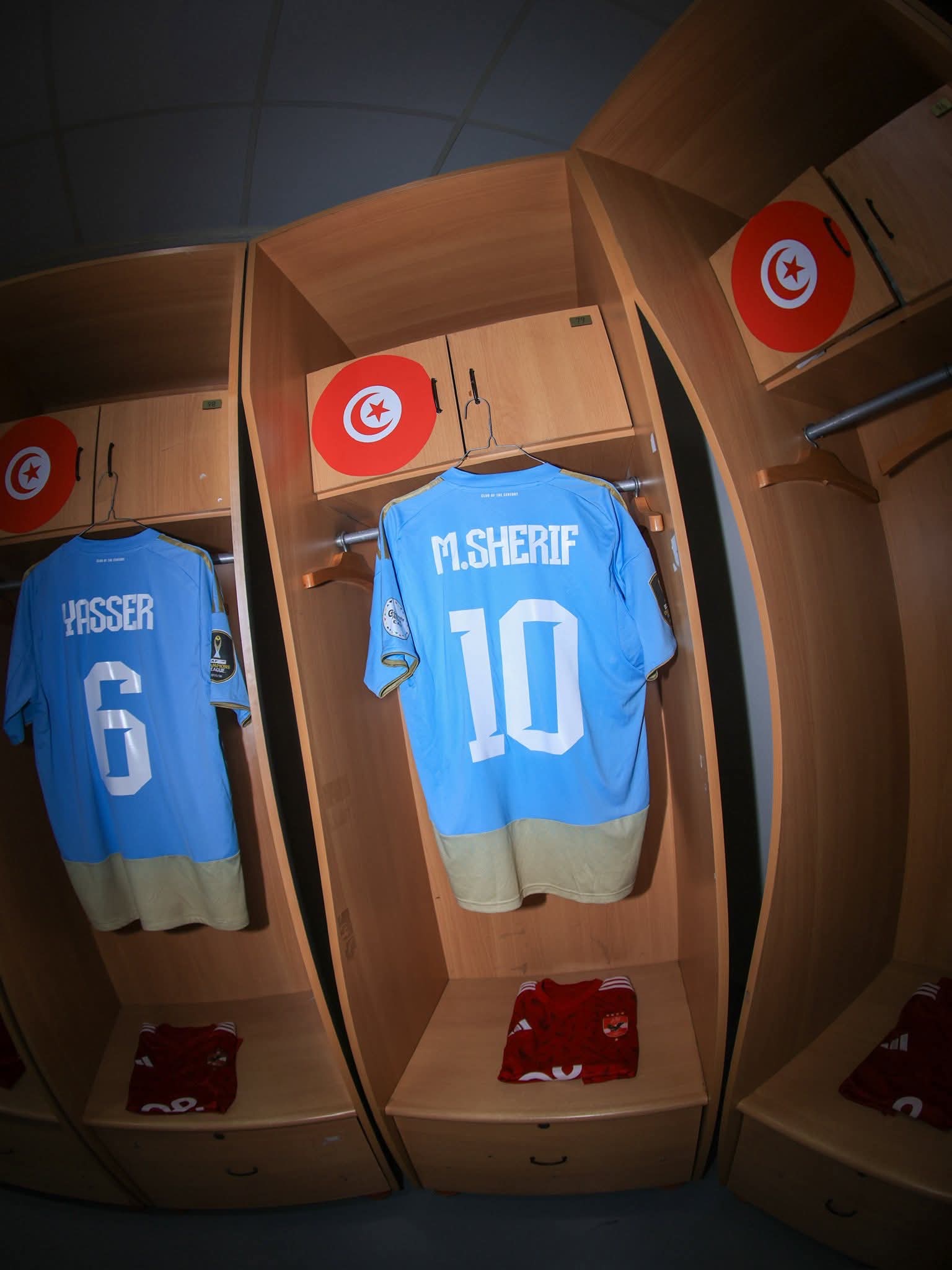 نشرت صفحة النادي الأهلي الرسمية عبر موقع فيس بوك صوراً من غرفة ملابس الفريق باستاد رادس قبل مباراة الترجي التونسي الليلة فى ذهاب دور الثمانية بدوري أبطال أفريقيا.