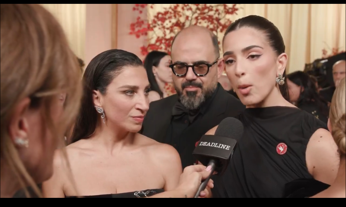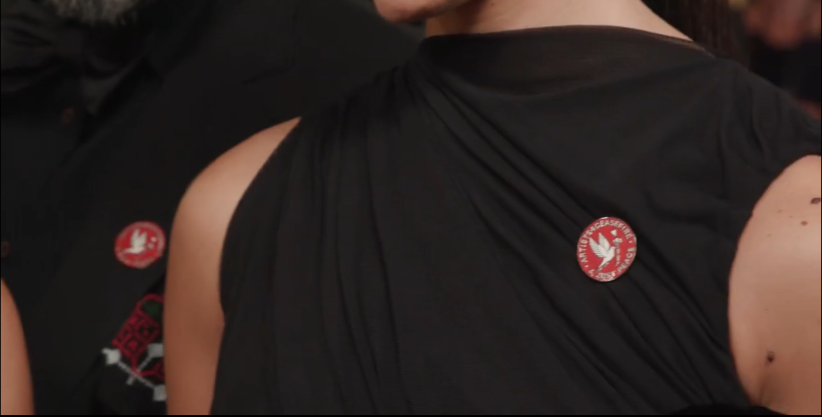 كما ارتدى صناع فيلم صوت هند رجب دبوسا عليه شعار وقف إطلاق النار.