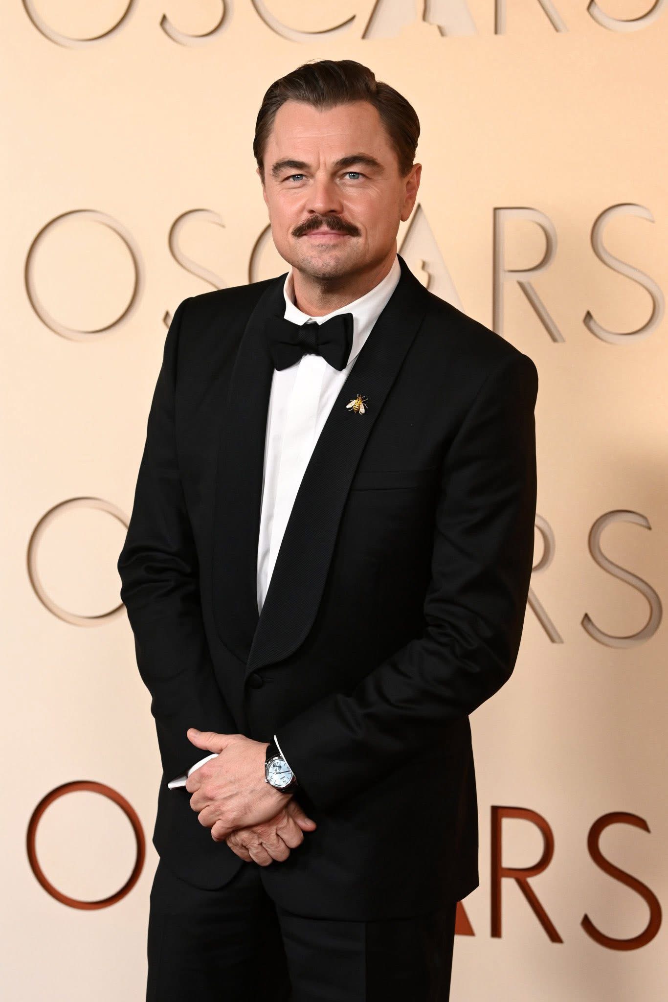 وصل منذ الممثل العالمي ليوناردو دي كابريو للسجادة الحمراء لحفل جوائز الأوسكار 98 .
