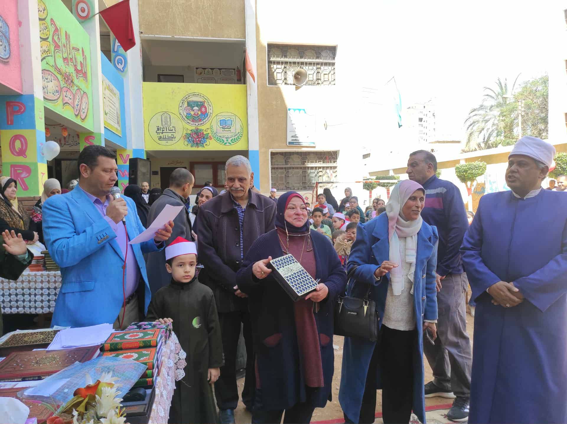 فيما تم إهداء الدكتور سيد الجنيدى كتاب الله من تلاميذ المعهد وتم تكريم الفائزين فى المسابقة من حفظة القرآن الكريم بجميع المراحل التعليمية، كما تم تكريم أولياء الأمور من حفظة كتاب الله.