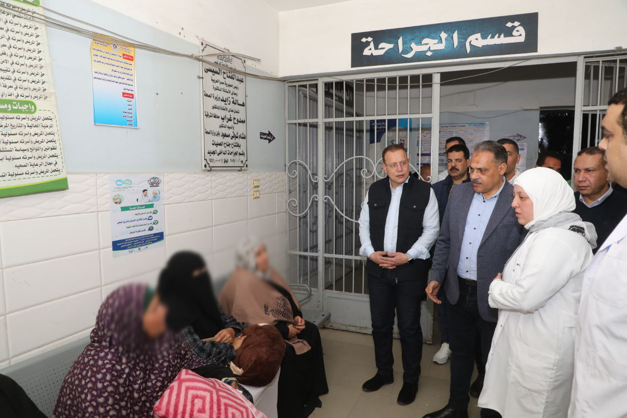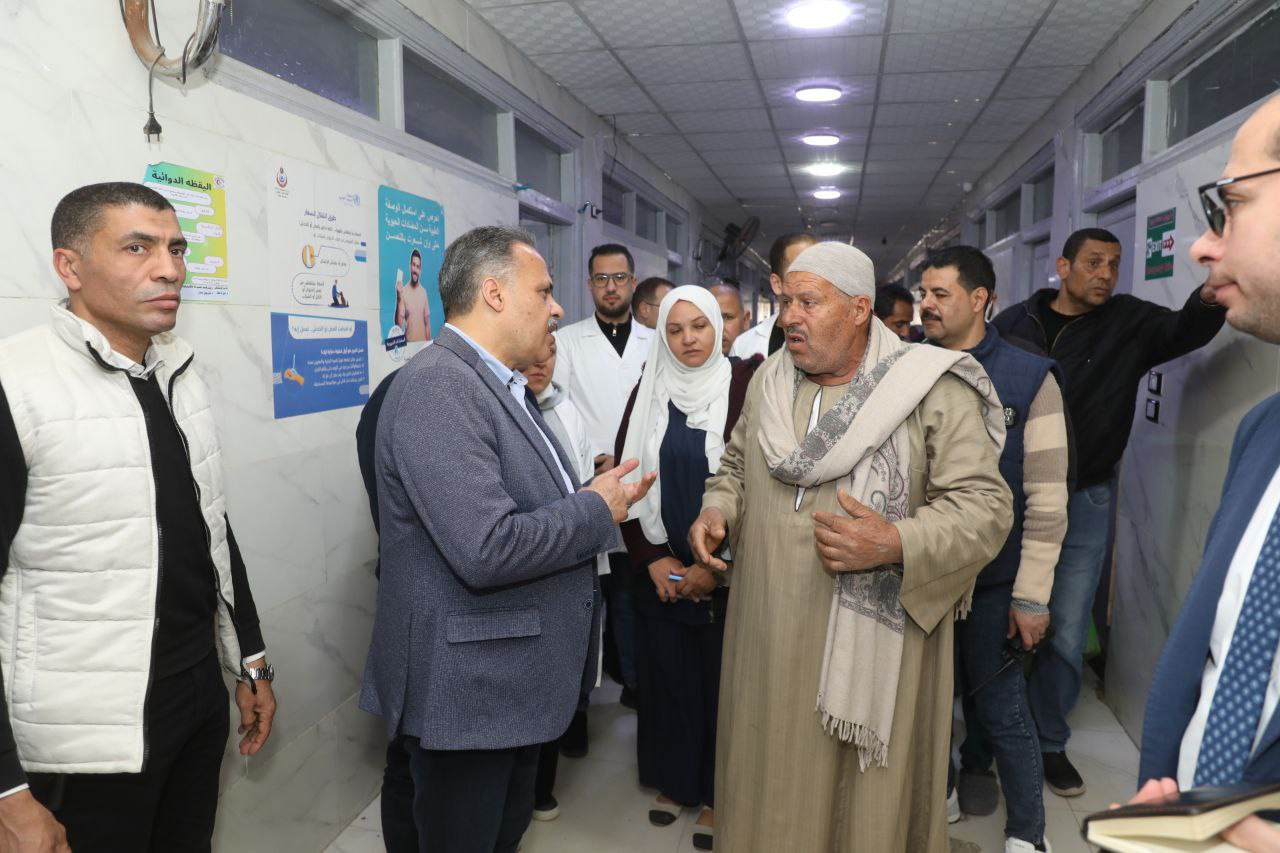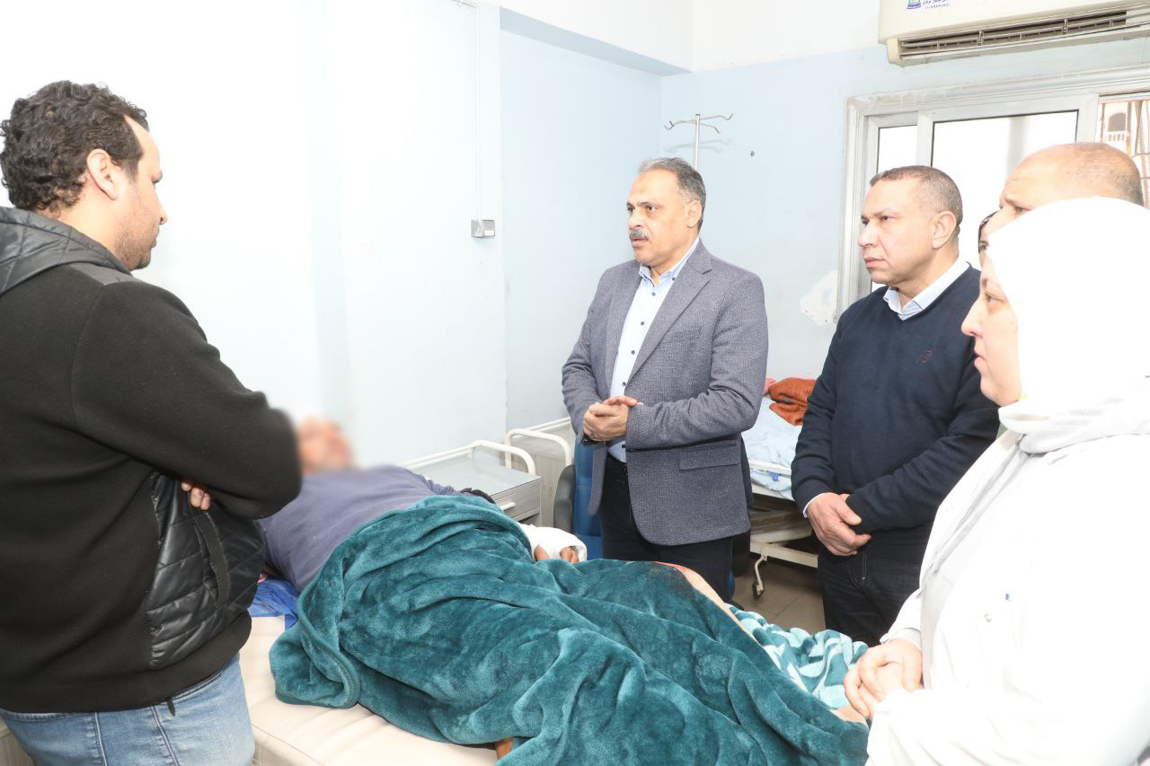 بدأ المحافظ جولته التفقدية بمتابعة سير العمل بقسم الإستقبال والطوارئ بالمستشفى، والذي يضم ١٠ أسره، حيث إستقبل القسم حتى وقت الزيارة ٦٧ حالة ، تم تقديم خدمات الفحص والتشخيص لها وتحويل الحالات التي تستدعي ذلك إلى الأقسام المختلفة داخل المستشفى لإستكمال مراحل العلاج.