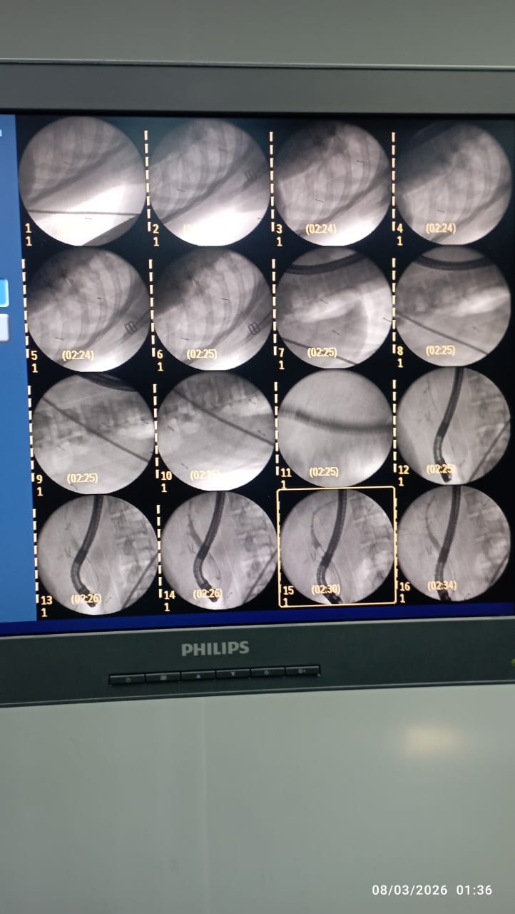 حيث تم إجراء أشعة رنين مغناطيسي على القنوات المرارية (MRCP)، والتي ساهمت في تشخيص الحالة بدقة، تلاها إجراء منظار القنوات المرارية (ERCP)، وتم من خلاله استكشاف القنوات واستخراج الحصوة المسببة للانسداد، مع توسيع القناة المرارية، كما تم استئصال المرارة بالمنظار الجراحي ضمن خطة علاجية متكاملة.
