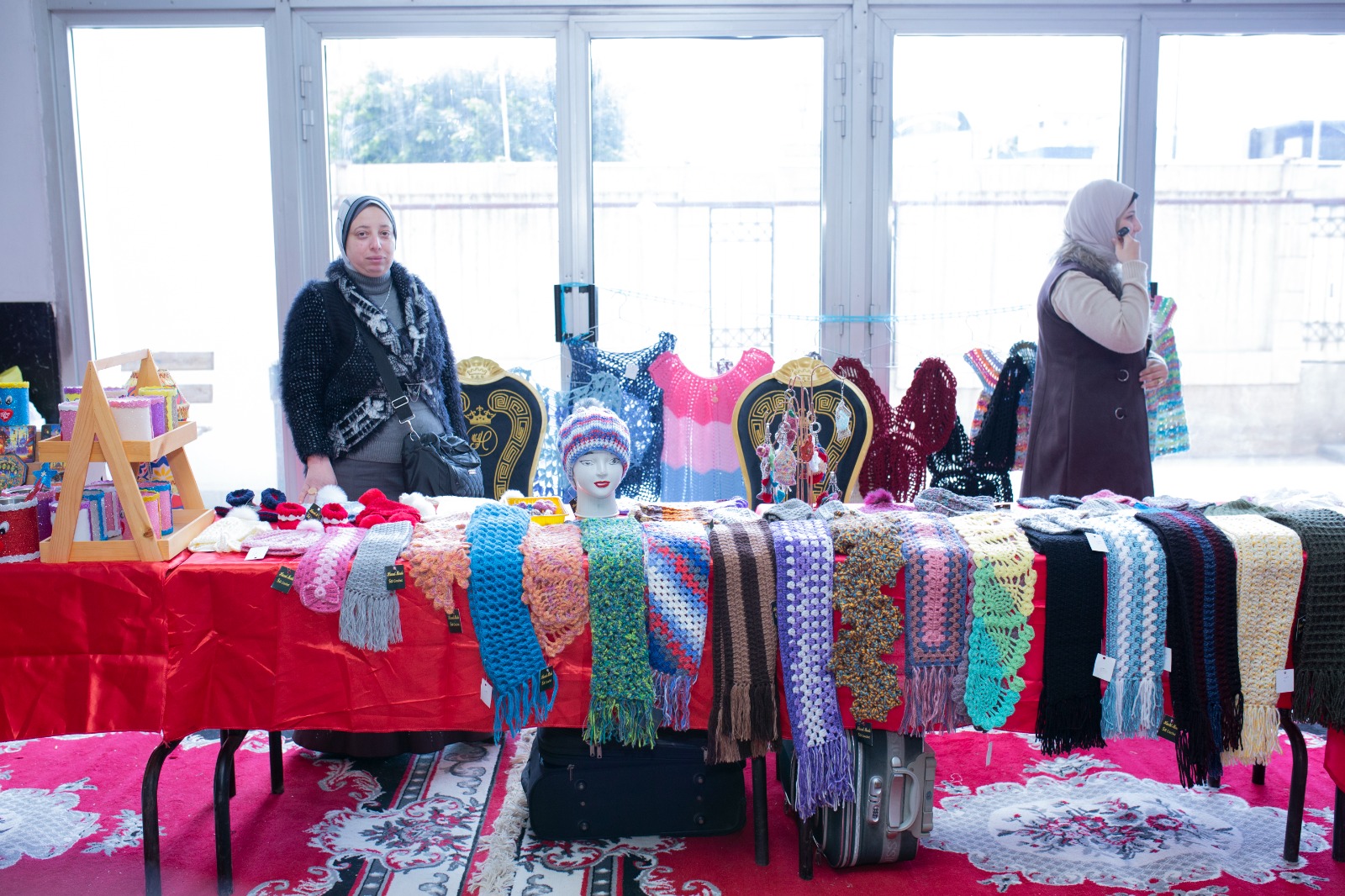 وأضافت أن فعاليات المعرض شهدت حضورا مميزا، وإقبالا كثيفا وسط أجواء سادتها روح التعاون والمشاركة الإيجابية، ما يعكس نجاح المعرض وتحقيق أهدافه المرجوه، موضحا أن المعرض تضمن مجموعة متنوعة من الملابس والمصنوعات الجلدية ذات الجودة العالية، والشنط الـ "هاند ميد"، والمشغولات اليدوية و الكليم اليدوي المنسوج على النول، وإكسسوارات، بالإضافة إلى العطور ومنتجات الأركت، فضلا عن مجموعة من حلويات العيد تم طرحها بأسعار رمزية تراعي الظروف الاقتصادية المختلفة، وتسهم في تخفيف الأعباء المادية للطلاب والعاملين.