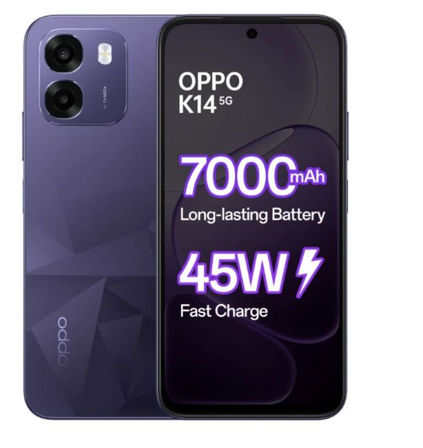 أطلقت شركة OPPO هاتف K14 5G ويركز الهاتف على عمر البطارية، والمتانة، والأداء السلس في الاستخدام اليومي. يأتي بشاشة HD+ مقاس 6.75 بوصة بدقة 1604 × 720 بكسل.