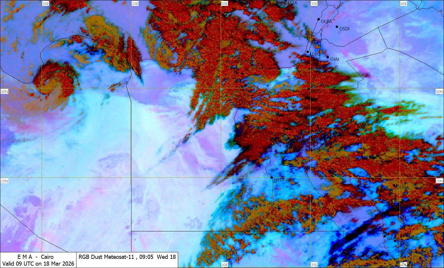 أكدت الهيئة العامة للأرصاد الجوية، أن اليوم الأربعاء 18 مارس 2026 يشهد حالة من عدم الاستقرار في الأحوال الجوية على أغلب الأنحاء، يصاحبها فرص أمطار متفاوتة الشدة تكون رعدية أحياناً، ونشاط للرياح تتراوح سرعتها من (40 إلى 50) كم/س تكون مثيرة للرمال والأتربة، مع ارتفاع في درجات الحرارة بقيم تتراوح من (2 إلى 3) درجة على أغلب الأنحاء.