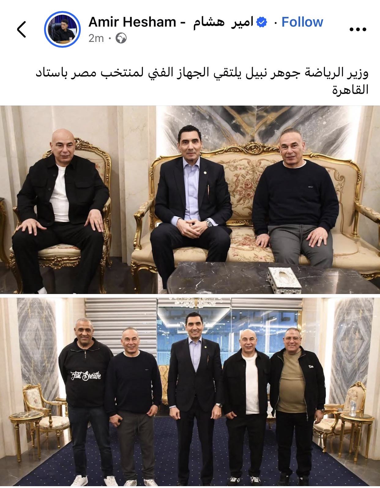 نشر الإعلامي أمير هشام صورة، كشف من خلالها عن لقاء وزير الشباب والرياضة مع الجهاز الفني لمنتخب مصر.