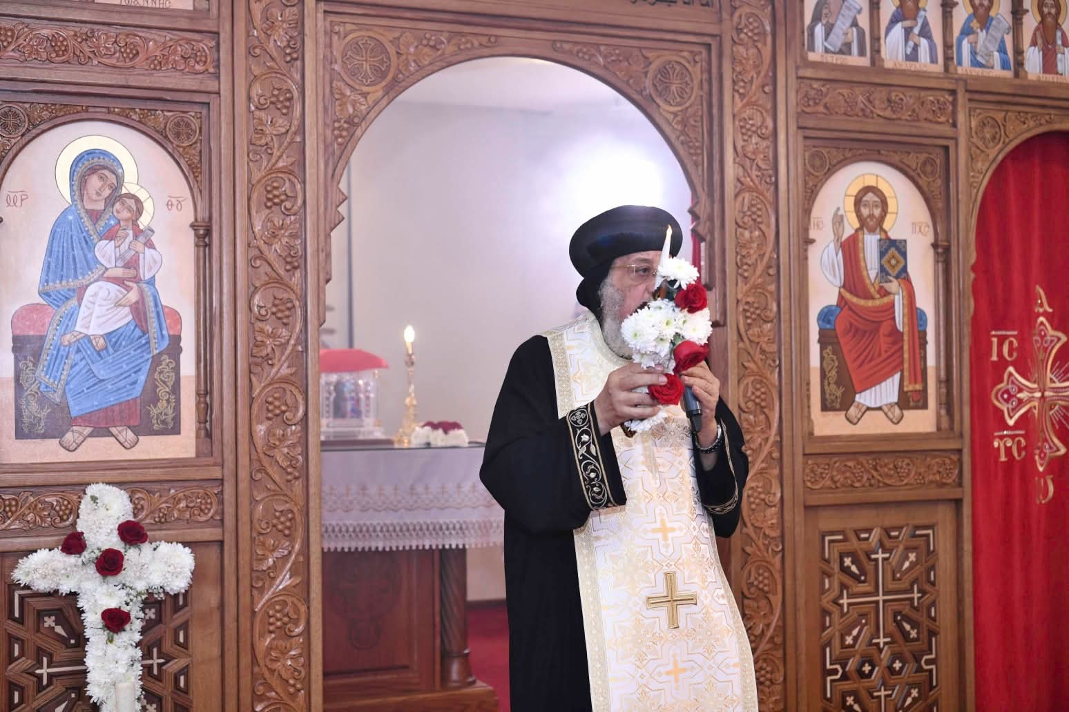 صلى قداسة البابا عشية عيد الصليب المقدس، واستكمل سلسلة "قوانين كتابية روحية"، وتحدّث اليوم عن "معجزة شفاء المفلوج في ضوء الصليب المقدس"، وقرأ جزءًا من الأصحاح الخامس في إنجيل معلمنا يوحنا والأعداد (١ - ٩)، وجزءًا آخر من الأصحاح الثامن في رسالة القديس بولس الرسول إلى أهل رومية والأعداد (١٧ - ١٩)، مشيرًا إلى احتفال الكنيسة غدًا بعيد ظهور خشبة الصليب المجيد، ومرور ١٧ قرنًا على اكتشافه، كما أن انعقاد مجمع نيقية كان في عام ٣٢٥ ميلادية، وكأن الله أراد أن يكافئ الكنيسة الواحدة المتحدة والتي وقفت أمام هرطقة أريوس، باكتشاف خشبة الصليب المقدس.