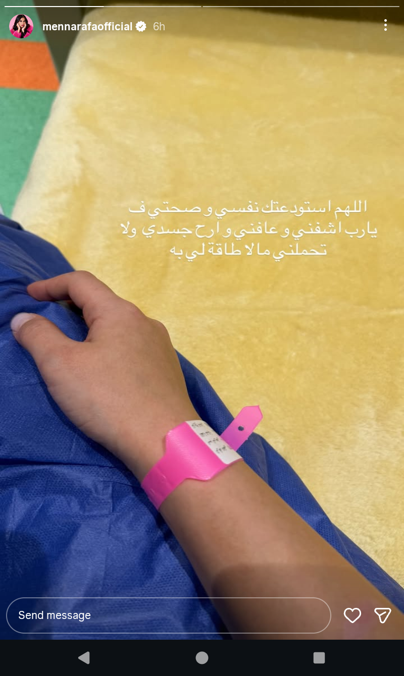 ونشرت منه عرفة صورة لها من داخل المستشفى عبر صفحتها على موقع التواصل الاجتماعي إنستجرام خلال خاصية.