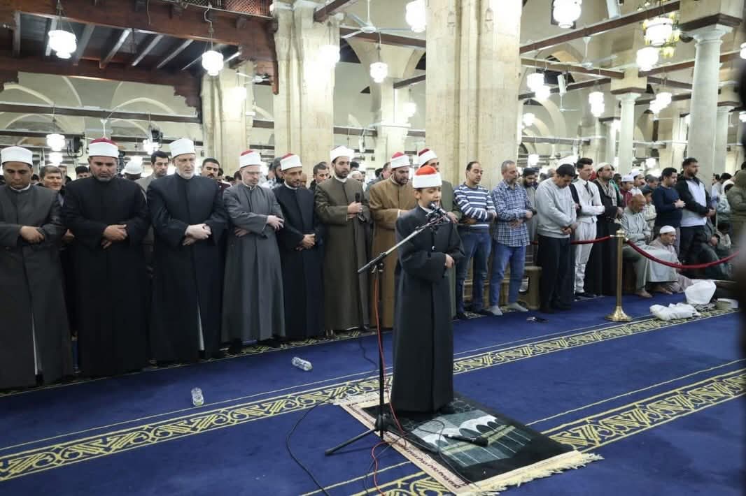 شارك القارئ عمر علي الذي تم تكريمه من قبل الرئيس السيسي بجائزة المركز الأول في الموسم الأول من برنامج "دولة التلاوة" بتصويت الجمهور،وذلك خلال احتفالية وزارة الأوقاف بليلة القدر عدة صور له من داخل جامع الأزهر الشريف أثناء صلاته كـ إمام بالمصلين.
