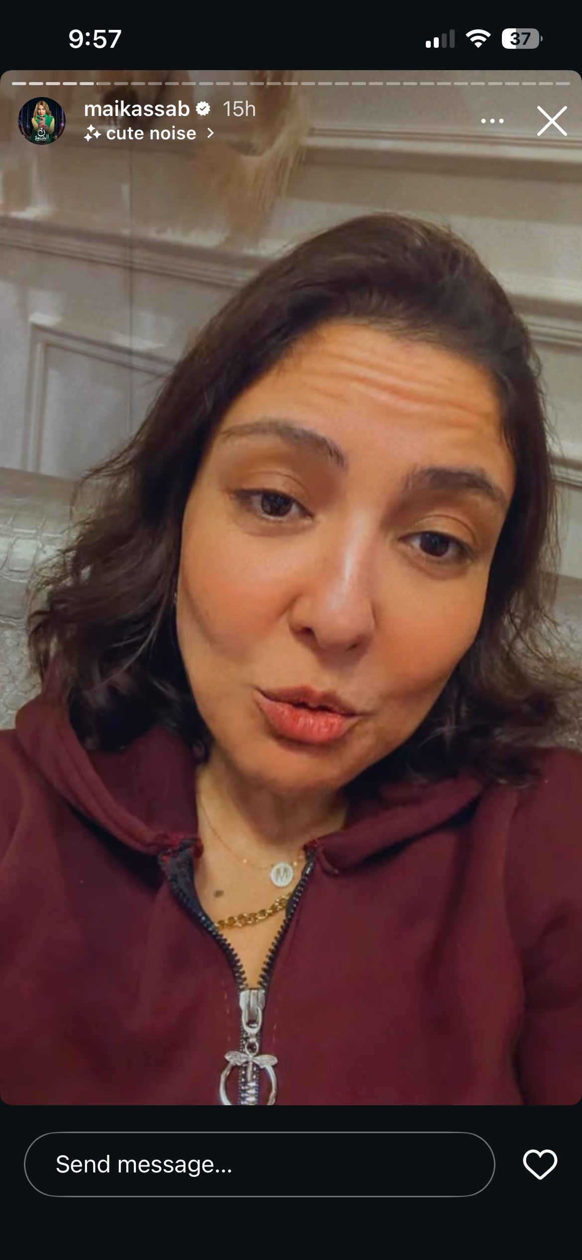 ونشرت مى كساب فيديو عبر الاستوري بحسابها على انستجرام، وكتبت: “أنا طول الوقت بتشتم من عيالى وأصحابى وأهلى وقرايبى، بصراحة دايرة علاقاتى دى لازم أغيرها”.