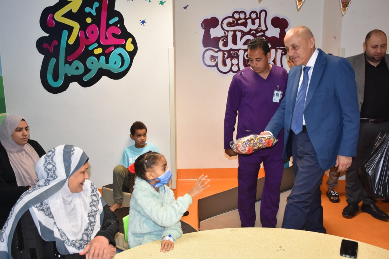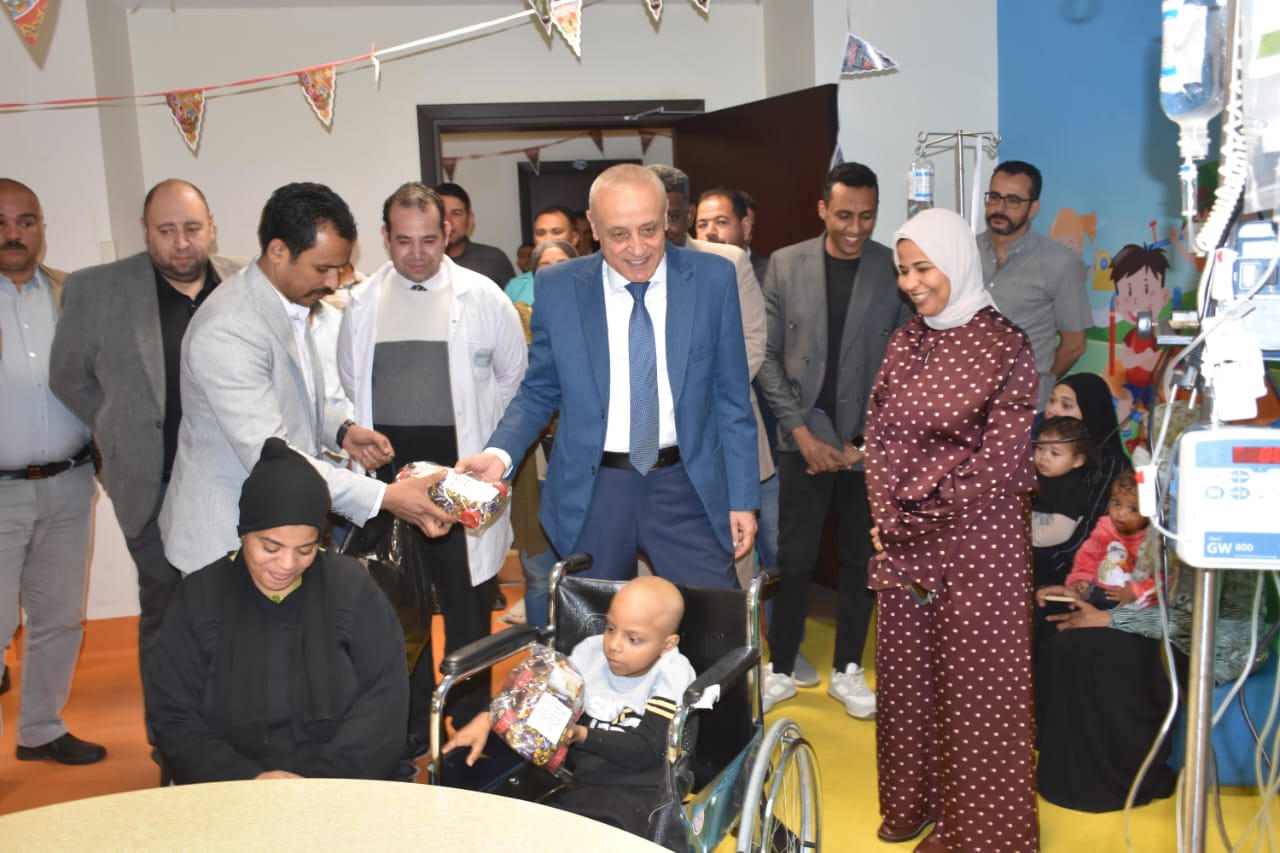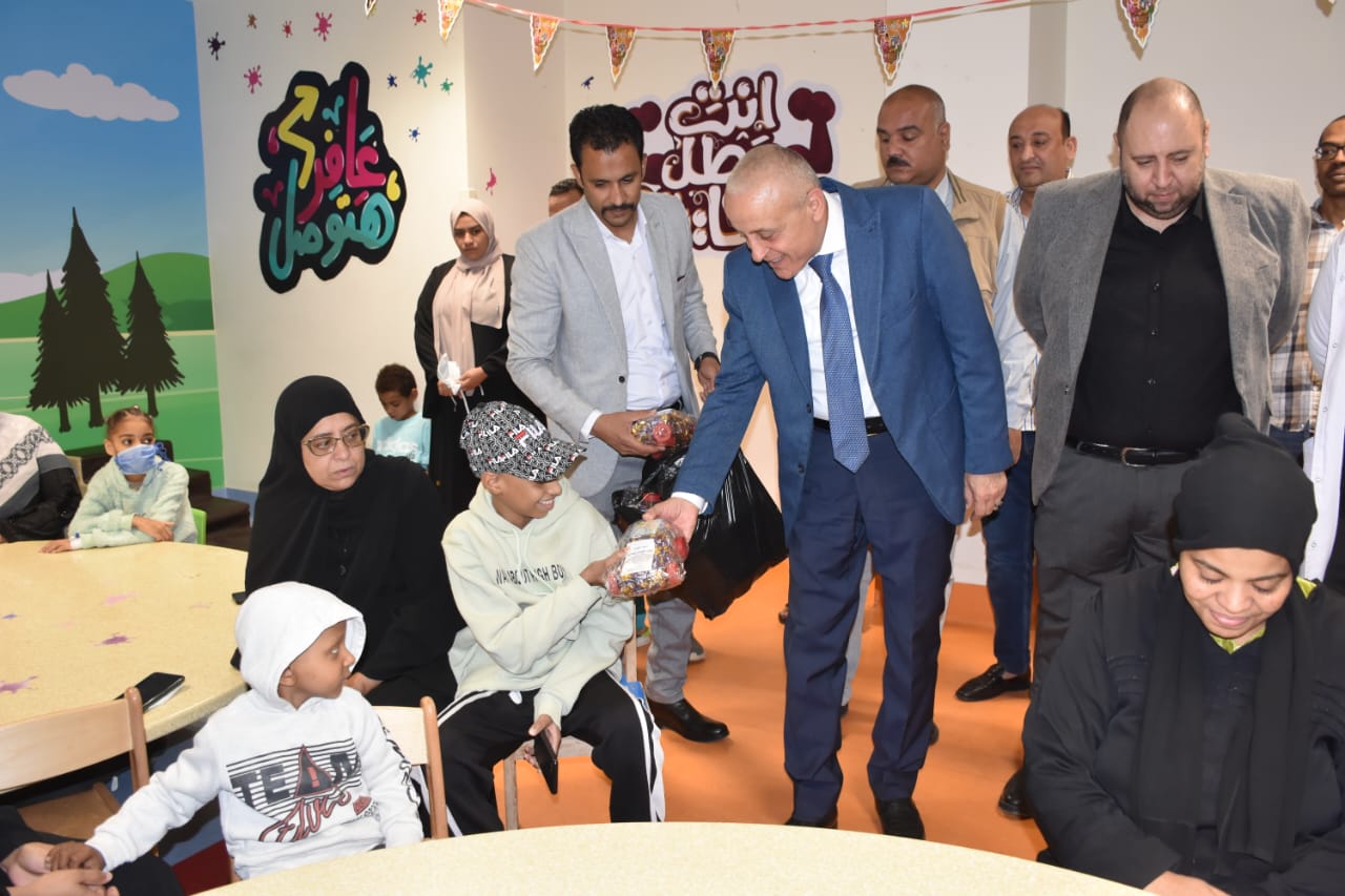 زار المهندس عبد المطلب عمارة محافظ الأقصر، مستشفى شفاء الأورمان لعلاج الأورام بالمجان بمدينة طيبة، للاحتفال مع الأطفال في المستشفى بحلول عيد الفطر المبارك، وذلك لإدخال البهجة والسرور على قلوب الأطفال الصغار وتوزيع الهدايا والألعاب عليهم.