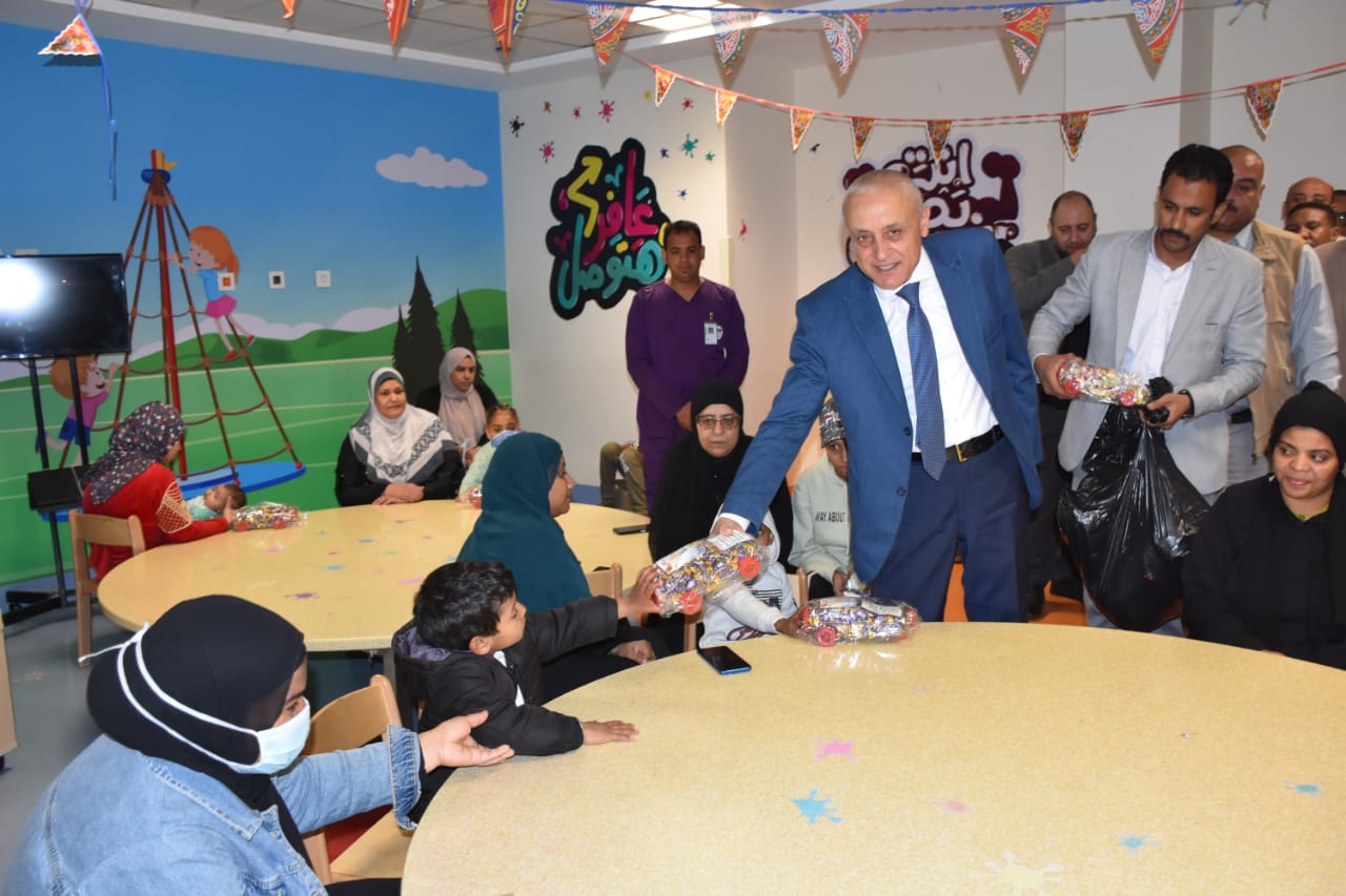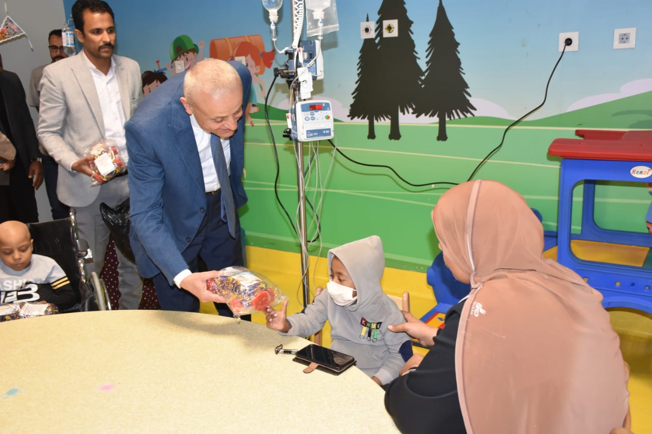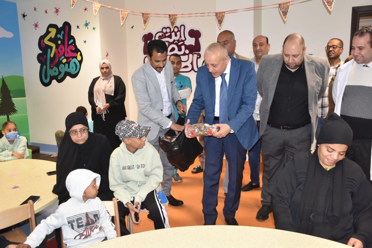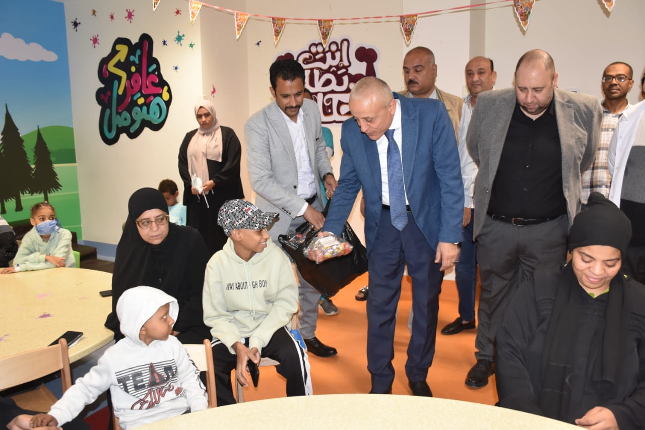 زار المهندس عبد المطلب عمارة محافظ الأقصر، مستشفى شفاء الأورمان لعلاج الأورام بالمجان بمدينة طيبة، للاحتفال مع الأطفال في المستشفى بحلول عيد الفطر المبارك، وذلك لإدخال البهجة والسرور على قلوب الأطفال الصغار وتوزيع الهدايا والألعاب عليهم.