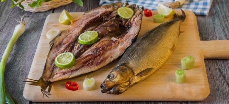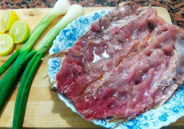 - افتح جسم السمكة نفسها وفرغ قلب بطنها الداخلي، وارفع البطروخ ثم ضعه جانبًا في طبق لتقديمه، ثم قم بنزع العمود الشوكي «السلسلة» منها وتخلى من اللحم ثم ترمى.