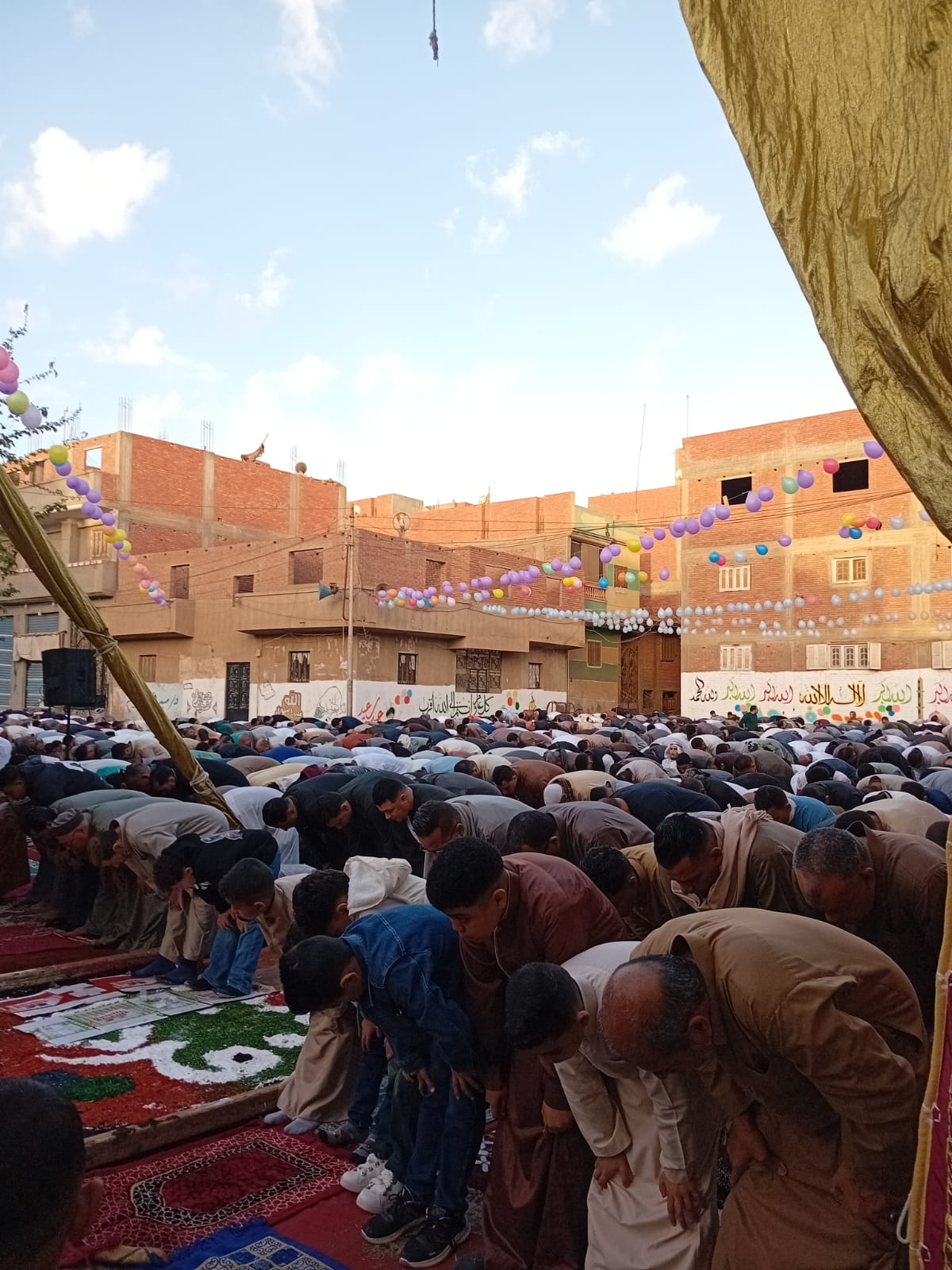 ومن جانبهم ادي شباب القرية دوراً بارزاً في تنظيم ساحة الصلاة حيث قاموا بتجهيز المصلى بشكل مميز، وتزيينه بالورود والبالونات لإضفاء طابع احتفالي يليق بهذه المناسبة المباركة، وهو ما لاقى استحسان وإشادة واسعة من الأهالي.
