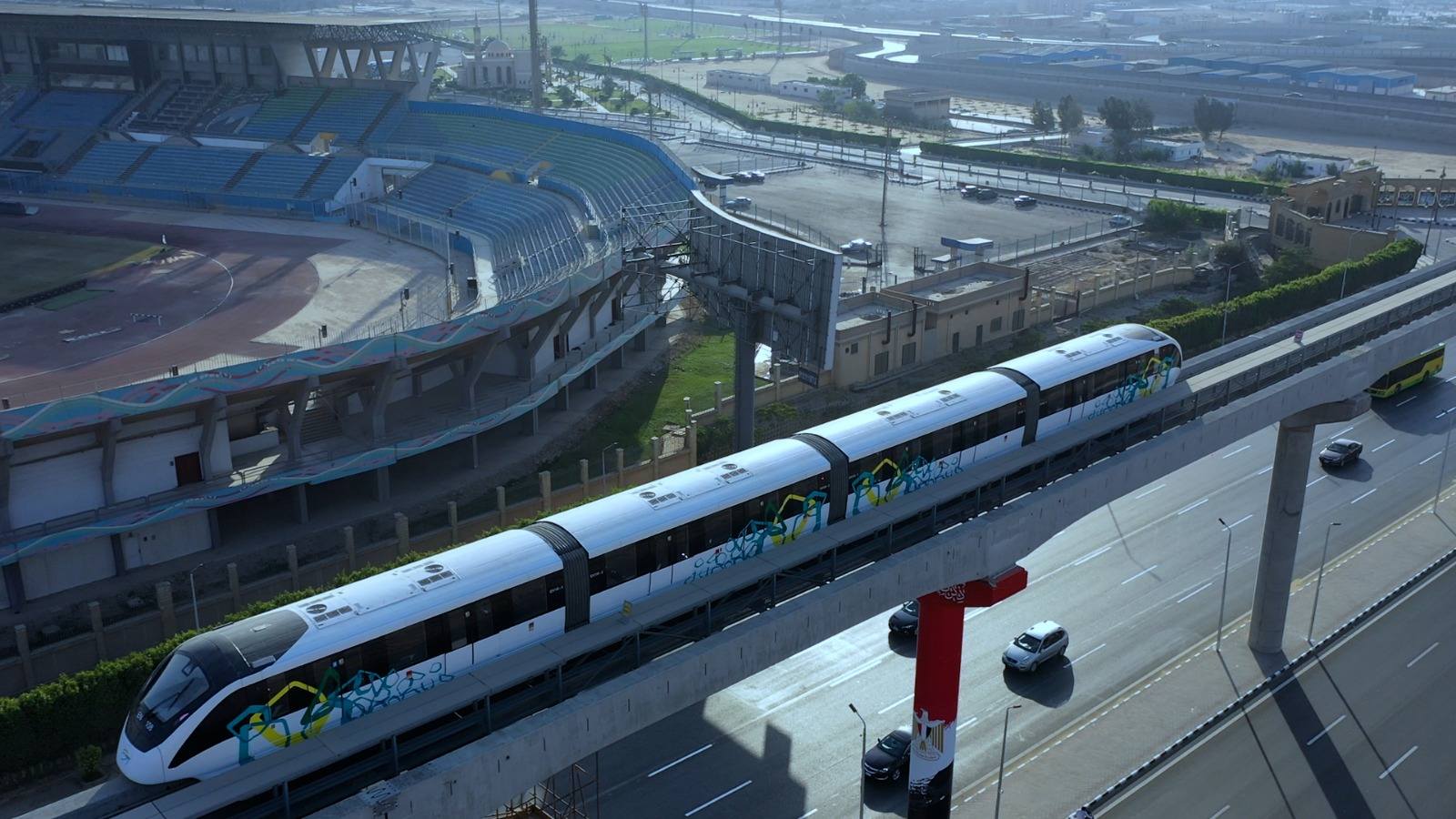 كما أن المونوريل يتم تنفيذه بالاماكن التي يصعب فيها تنفيذ خطوط المترو ووسائل النقل السككي الاخرى و يتميز بامكانية تنفيذه بالشوارع التي لها انحناءات افقية كبيرة ولا يحتاج الي تعديلات كثيرة في المرافق كما تقل فيه اعمال نزع الملكيات الى حد كبير. و يتميز المونوريل بتنفيذه على مسار علوي بالجزيرة الوسطى بالشوارع التي يمر بها ولا يشغل أي أجزاء من الشارع الأمر الذي يعني عدم تاثر حركة المرور بهذه الشوارع، مضيفا أن قطارات المونوريل تتميز بأنها تعمل بدون سائق وأن زمن التقاطرسيصل إلى 3 دقائق ومن المخطط أن يصل إلي 90 ثانية مع زيادة حجم الطلب، كما يستغرق زمن الرحلة من استاد القاهرة حتى (العاصمة الجديدة) حوالي 70 دقيقة إضافة إلى أنه تم ولأول مرة تركيب Screen Doors على الأرصفة أمام أبواب القطار للحفاظ على سلامة الركاب ، إضافة إلى وجود ممرات آمنة تسمح بانتقال الركاب بين العربات لمزيد من الراحة للركاب، كما يوجد داخل العربات شاشات LED لاستخدامها في تزويد الركاب بمعلومات عن الرحلة أو يمكن استخدامها تجارياً في بث الإعلانات التجارية مدفوعة الأجر ، ويوجد أعلى الأبواب الجانبية شاشة لإعلام الركاب باسم المحطة النهائية ، وتم تخصيص أماكن للكراسي المتحركة الخاصة بأبطالنا ذوى الهمم مزودة بوسائل للتثبيت بالاضافة الى تزويد العربات بخرائط أعلى أبواب الركاب من الداخل تبين المسار عن طريق لمبات مضيئة لمساعدة فاقدي حاسة السمع ، لافتا الى أن المشروع أسهم في توفير عدد 15000 فرصة عمل مباشرة لتصميم وتنفيذ (الاعمال المدنية والكهروميكانيكية) وحوالى 10000 فرصة عمل غير مباشرة في الصناعات والخدمات المرتبطة بالمشروع.