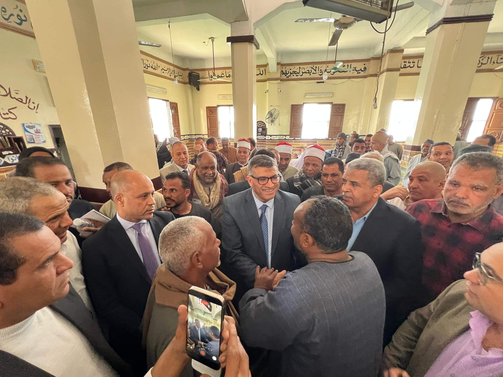 وعقب انتهاء الشعائر، حرص المحافظ على عقد لقاء مع أهالي مدينة دشنا، للاستماع إلى مقترحاتهم وشكاواهم، كما سادت أجواء من البهجة أثناء تقديمه التهنئة للأهالي والأطفال المتواجدين بالمسجد، مؤكداً أن مكتبه مفتوح دائماً لكل مواطن قنائى.