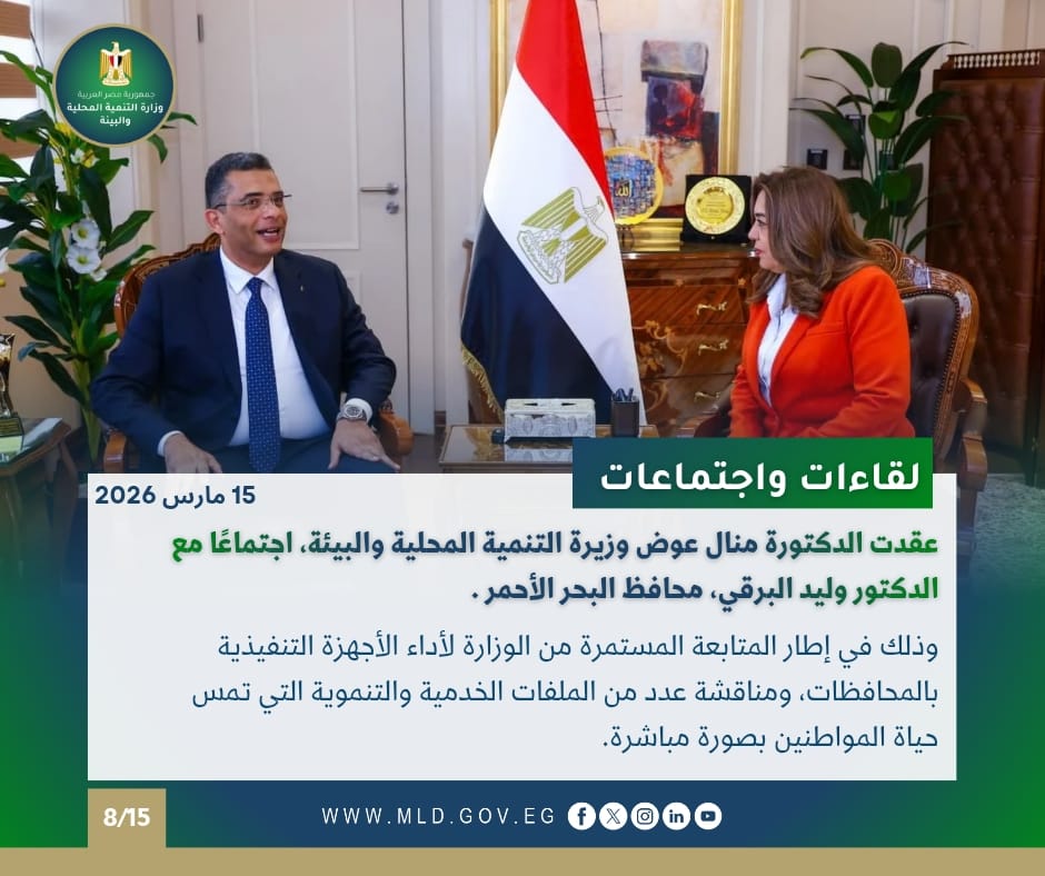 وعقدت الدكتورة منال عوض وزيرة التنمية المحلية والبيئة، اجتماعًا مع الدكتور وليد البرقي، محافظ البحر الأحمر، بمقر الوزارة بالعاصمة الجديدة، وذلك في إطار المتابعة المستمرة من الوزارة لأداء الأجهزة التنفيذية بالمحافظات، ومناقشة عدد من الملفات الخدمية والتنموية التي تمس حياة المواطنين بصورة مباشرة.