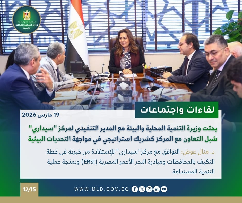 التقت الدكتورة منال عوض وزيرة التنمية المحلية والبيئة، مع الدكتور خالد فهمي المدير التنفيذي لمركز البيئة والتنمية للمنطقة العربية وأوروبا (سيداري) وفريق عمل المركز، لبحث سبل تعزيز التعاون المشترك بين الوزارة والمركز كشريك استراتيجي في مواجهة التحديات البيئية وتنفيذ رؤى الوزارة.
