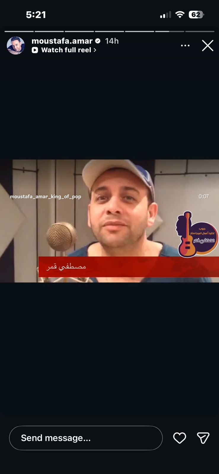 وقال مصطفى قمر، في فيديو عبر خاصية الـ"استوري": "كل سنة وأنتو طيبين بمناسبة عيد الفطر الكريم".