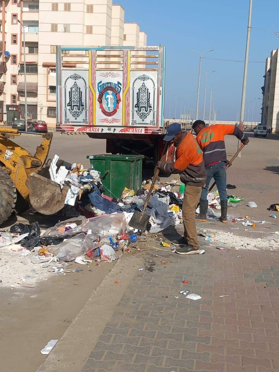 حي الشرق.. تفريغ الحاويات ورفع المخلفات أولاً بأول