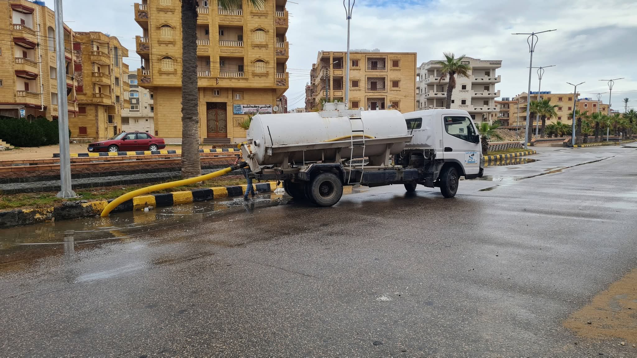 ودفعت الوحدات المحلية بالتنسيق مع شركة مياه الشرب والصرف الصحى بمحافظة كفر الشيخ بالمعدات وسيارات كسح المياه لمنع تراكمات المياه في الشوارع لسهولة حركة سير المارة والمركبات.