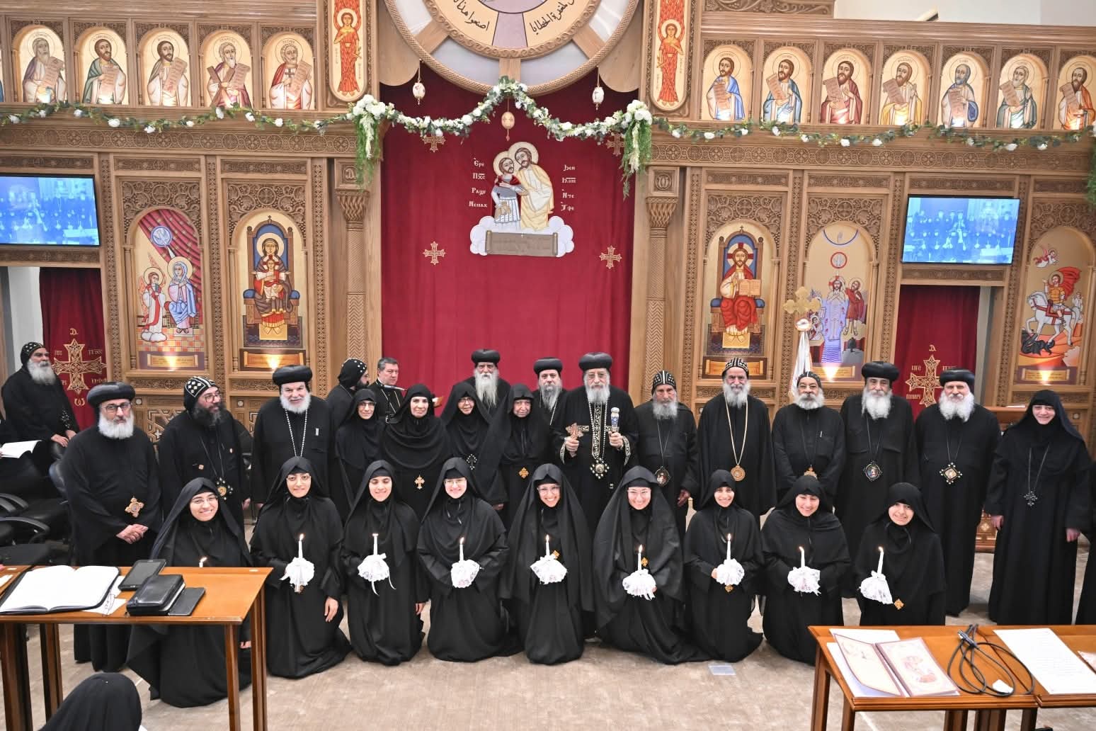 وصلى قداسته صلوات رهبنة طالبات الرهبنة، وشاركه ١٠ من الآباء الأساقفة بحضور رئيسات أديرة الراهبات القبطية.