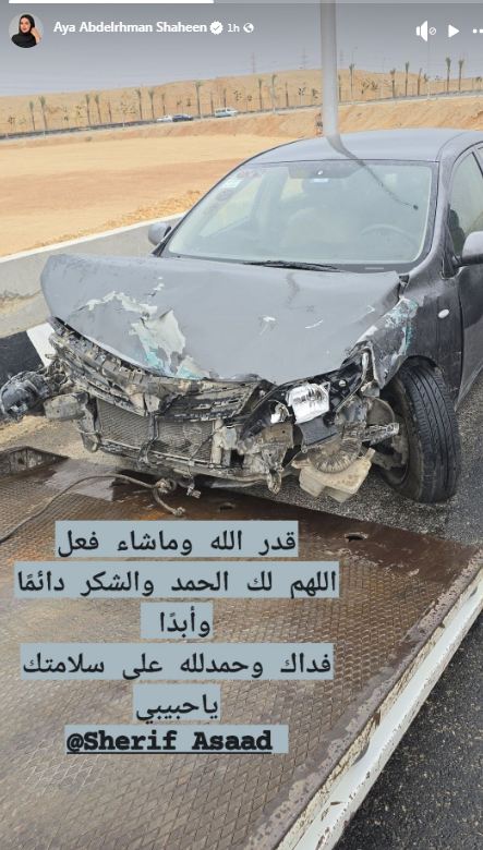 كشف النائبة والإعلامية آية عبد الرحمن، عن تعرض زوجها لـ حادث سير علي الطريق، أدي إلي فقدان سيارته.
