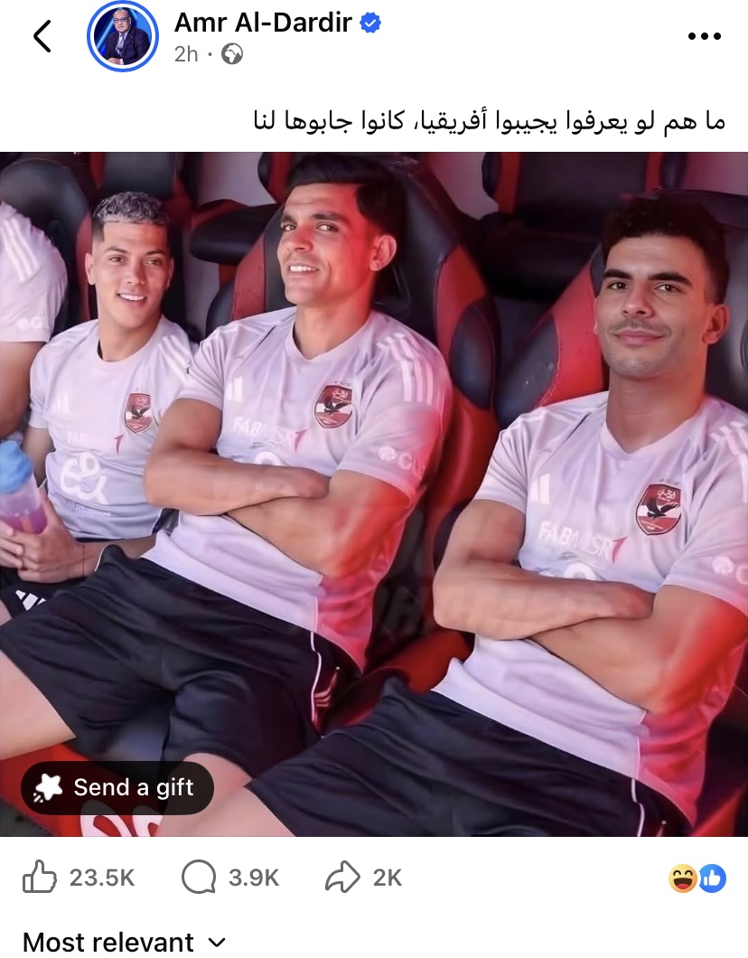 وشارك الدردير صورة لثلاثي الأهلي القادم من نادي الزمالك، وكتب عبر حسابه الشخصي على موقع فيسبوك: