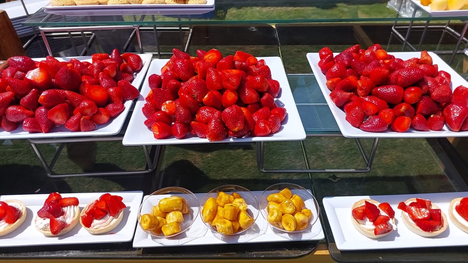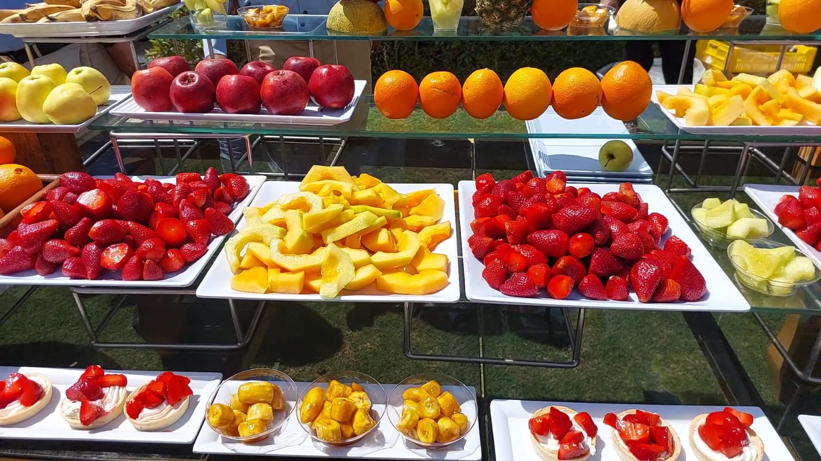 وأوضح خالد الصغير مدير فندق أن مهرجان الفواكه اليوم ضم عدد كبير من فواكه الشتاء من تفاح وموز واناناس وبرتقال وكيوى وفراوله
