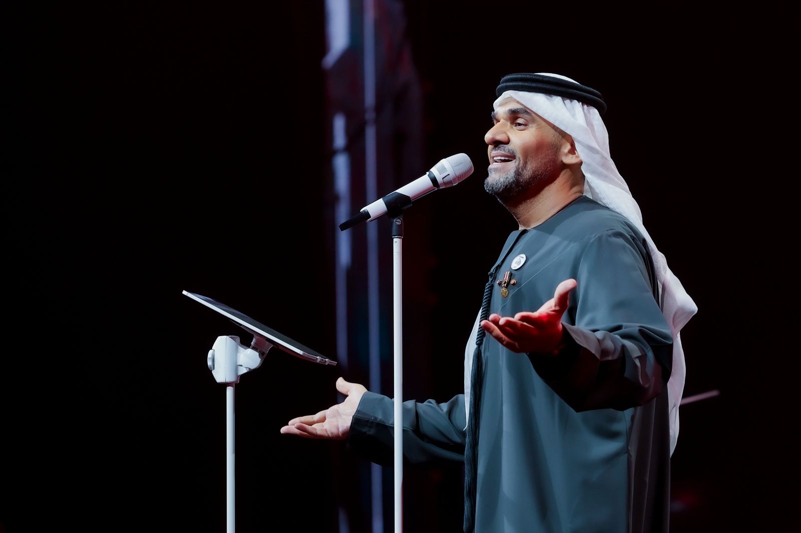 قدّم حسين الجسمي، خلال الحفل، أغنيته الوطنية "حامي الدار"، المهداة إلى صاحب السمو الشيخ محمد بن زايد آل نهيان، رئيس الدولة، في لحظة امتزجت فيها مشاعر الفخر بالتصفيق الحار، لترسم مشهداً جماعياً يعكس عمق الانتماء وروح الولاء التي تجمع الجمهور بقيادته.