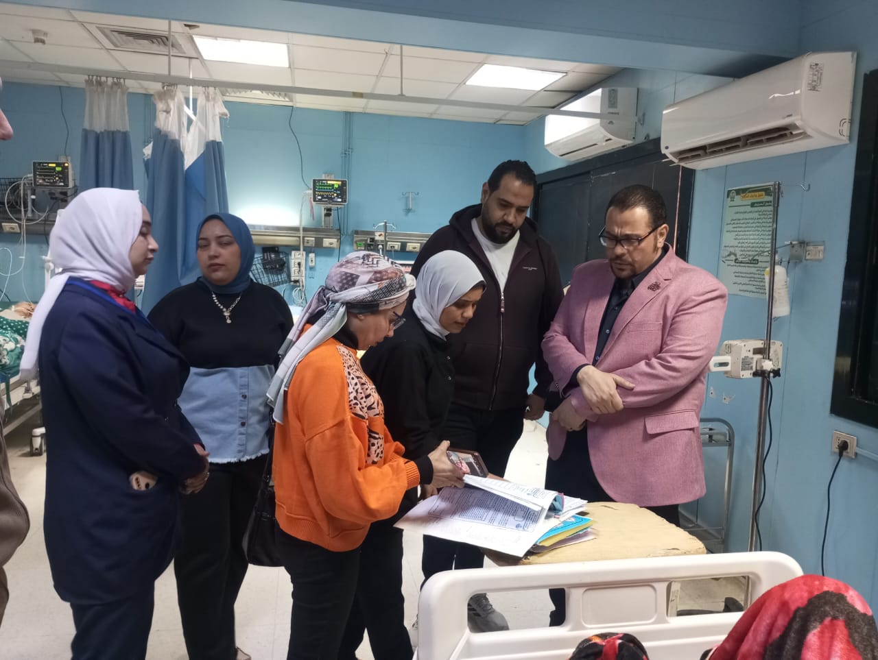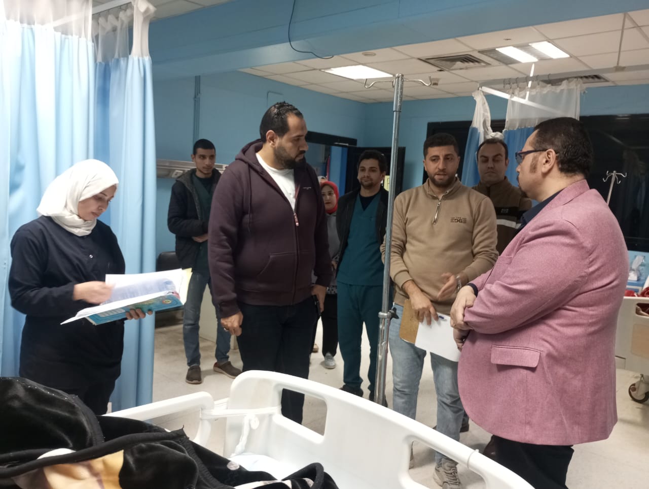 كما تفقد الدكتور أحمد البيلي قسم العناية المركزة للأمراض الباطنية والقلب، مطمئناً على الحالة الصحية للمرضى، من الطبيب المعالج وفريق التمريض، وتم التأكد من جودة الخدمات الطبية المقدمة لهم، بعد مناظرة الملفات الطبية، والتأكد من تدوين كافة الإجراءات العلاجية والتمريضية وفقاً للبروتوكولات العلاجية المعتمدة، موجهاً بتوفير كافة أوجه الرعاية الصحية للمرضى، كما أكد على أهمية الالتزام بكافة معايير الجودة وسياسات مكافحة العدوى داخل الأقسام المختلفة.