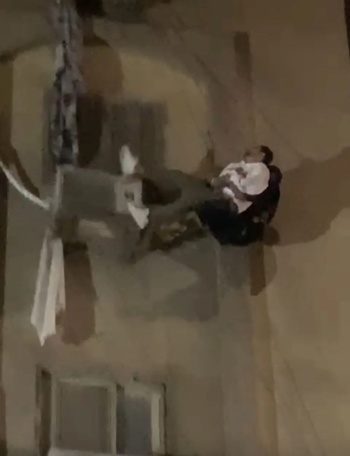 ورصد مقطع الفيديو لحظة إنقاذ الشاب حيث قام أحد أفراد الحماية المدنية بربط حبل من داخل الشقة، ونزل منه ووصل إلى الشاب، وتمكن من الإمساك به وإنزاله تدريجيًا، وظهر في الاسفل وسادة إنقاذ هوائية أسفل العقار، لتتم عملية إنقاذه دون وقوع أي إصابات.