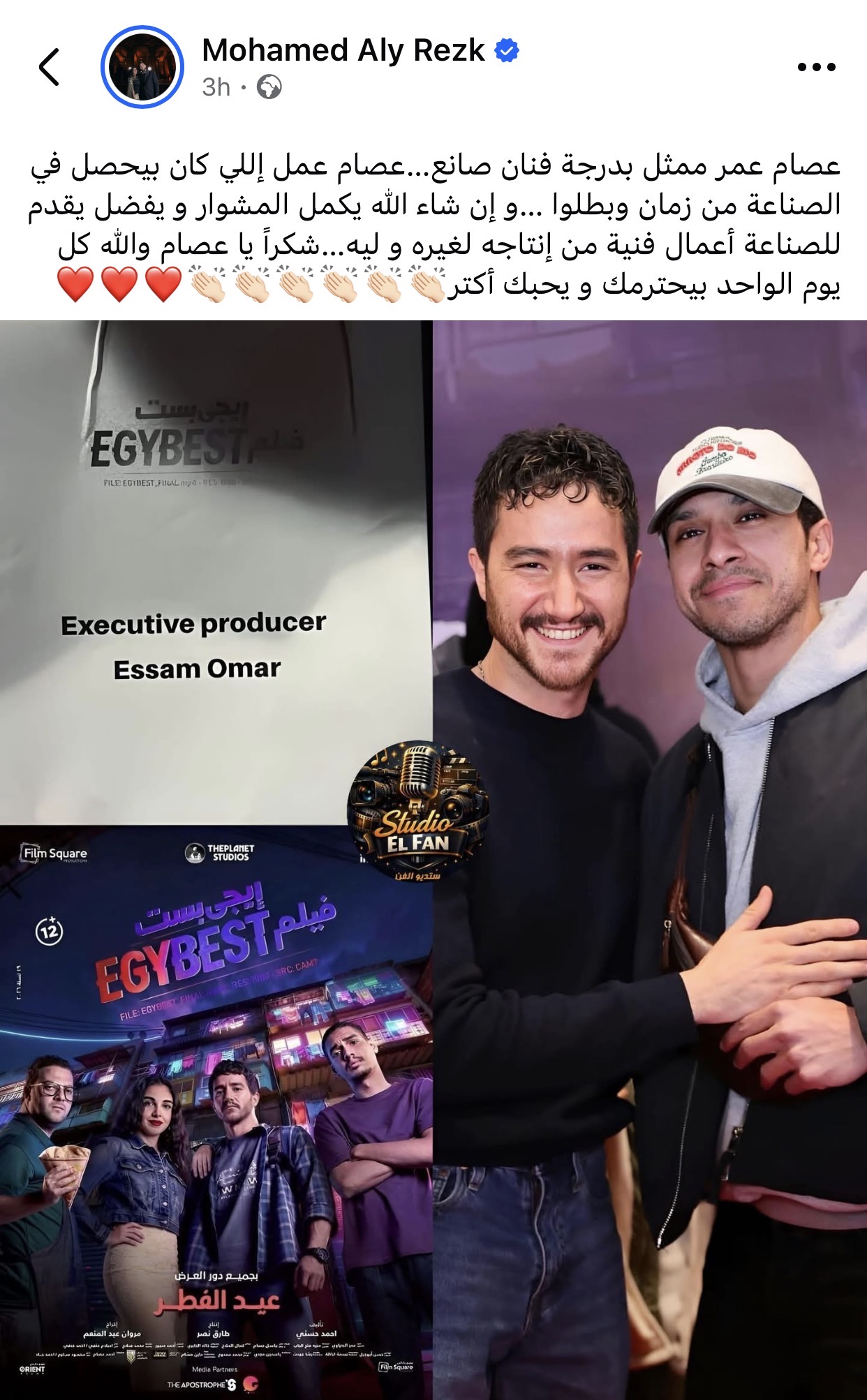وكتب محمد علي رزق عبر حسابه الشخصي بموقع فيسبوك: “عصام عمر ممثل بدرجة فنان صانع.. عصام عمل إللي كان بيحصل في الصناعة من زمان وبطلوا.. وإن شاء الله يكمل المشوار ويفضل يقدم للصناعة أعمال فنية من إنتاجه لغيره و ليه.. شكراً يا عصام والله كل يوم الواحد بيحترمك ويحبك أكتر”.