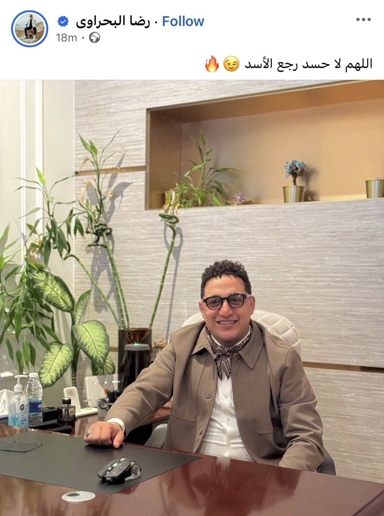 وشارك البحراوي جمهوره بصورة جديدة عبر حسابه الرسمي على موقع التواصل الاجتماعي فيسبوك، وعلق عليها قائلاً: “اللهم لا حسد..رجع الأسد”.