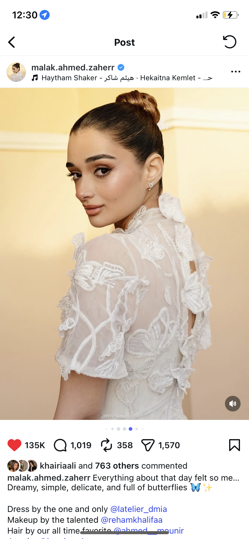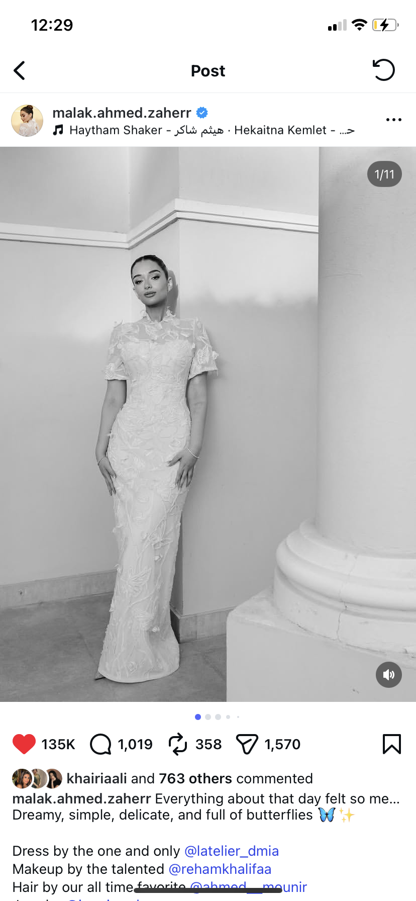 وكتبت ملك على الصورة: كل شيء فى ذلك اليوم كان يعكس شخصيتي تمامًا حالم، بسيط، رقيق، ومليء بالفراشات"، في تعبير رومانسي عن سعادتها بهذه المناسبة وتفاصيلها الراقية.