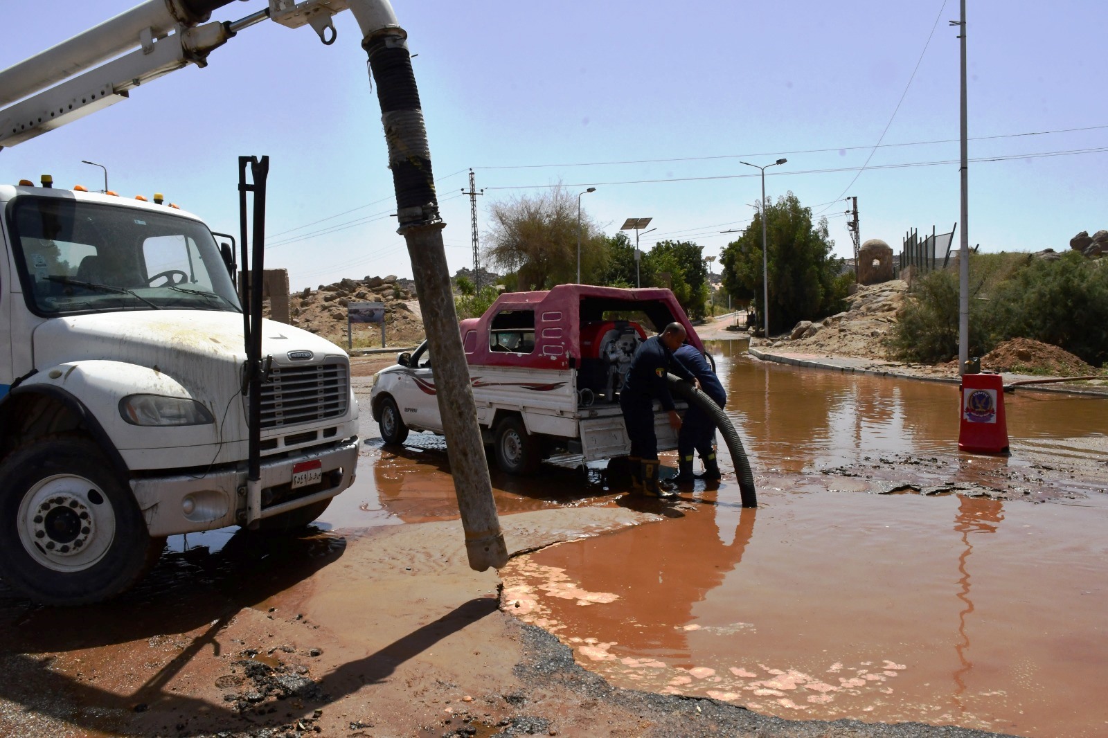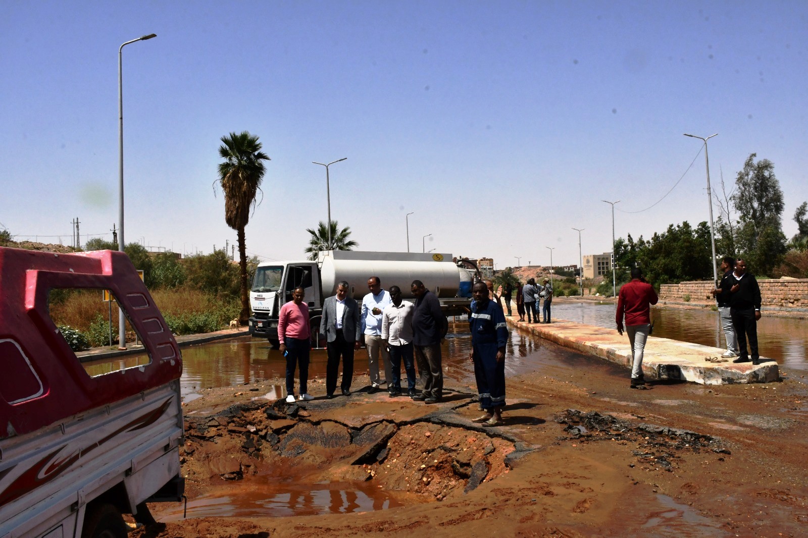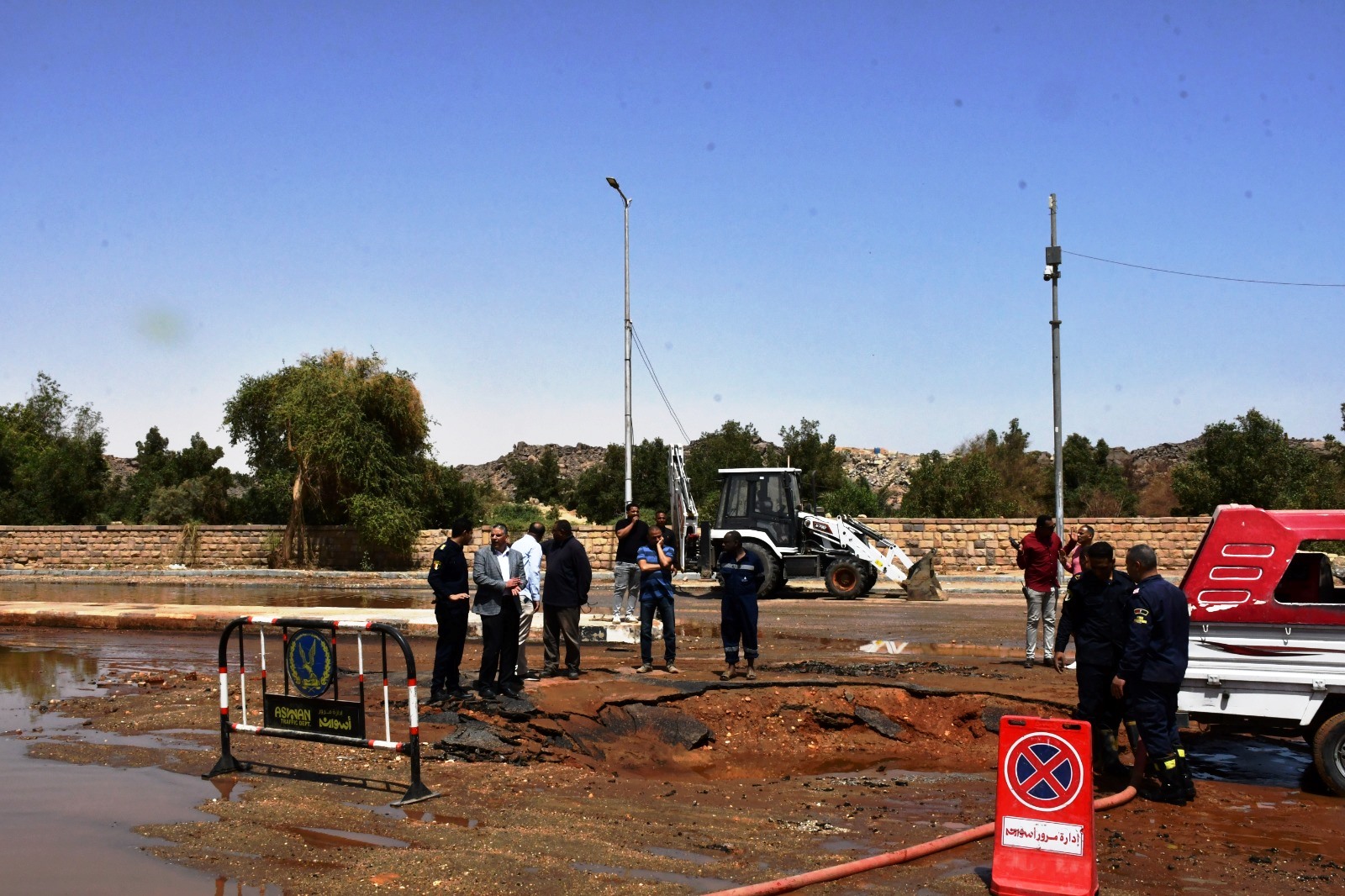 أعطى المهندس عمرو لاشين محافظ أسوان ، توجيهاته لفرق الصيانة الفنية بشركة مياه الشرب والصرف الصحى والمقاولون العرب والحماية المدينة بتنفيذ سيناريو محدد بتوقيتات زمنية لإصلاح للكسر الذى حدث فى خط الطرد الرئيسى قطر 630 مللى من نوعية الـ GRB والممتد من محطة الصرف الصحى رقم ( 11 ) بالكرور أمام منطقة فيله .