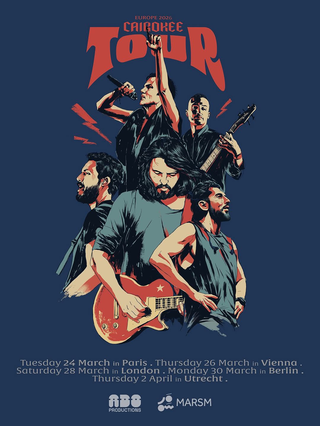 ومن المقرر أن تشمل الجولة عددًا من العواصم والمدن الأوروبية، حيث تحيي الفرقة حفلات متتالية في فيينا، ولندن، وبرلين، إلى جانب مدينة أوترخت.