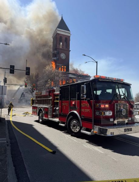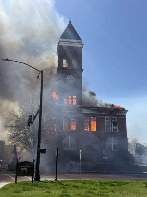 دُمّر مبنى محكمة مقاطعة فلويد التاريخي، الذي شُيّد عام 1892، جراء حريق اندلع بعد ظهر يوم الاثنين. وقد خرج جميع من كانوا بداخله سالمين.
